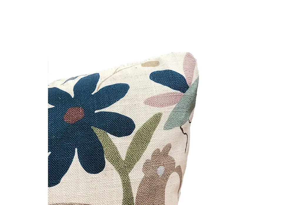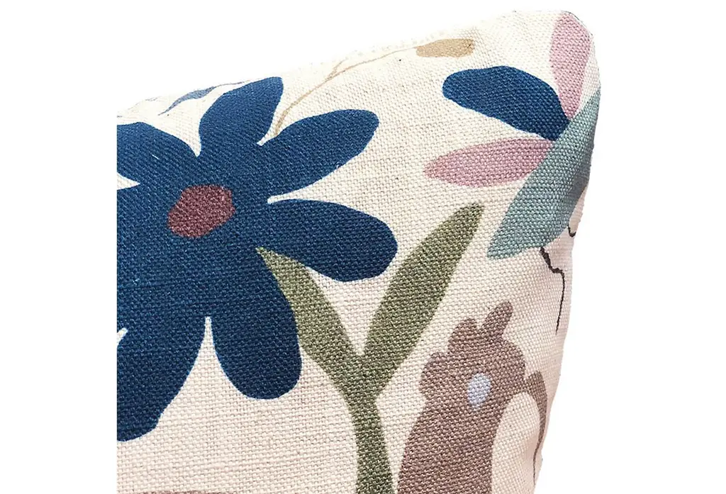 A charming Otomi-style print pops on this cotton-blend pillow, making it a stunning accent for any sofa, bed, or chair. Insert included. Solid neutral back. Zipper closure.