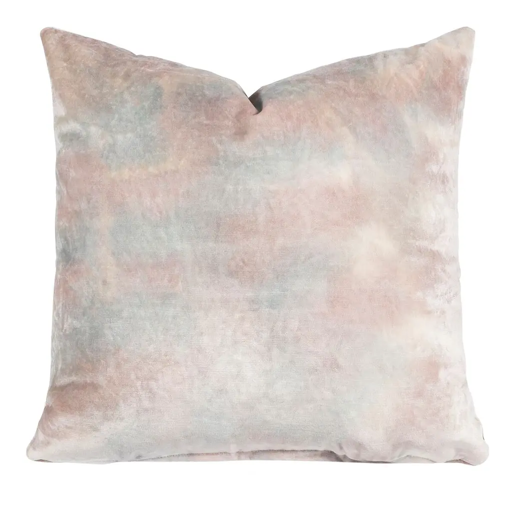 Dripping in rich hues, this silk velvet pillow has a striking iridescent sheen. Painted by hand in overlapping colors, its glowing ombre design is both striking and truly unique. Dye is applied by hand in layers on the velvet fiber surface. Variations in color are part of the nature of their unique dying process.