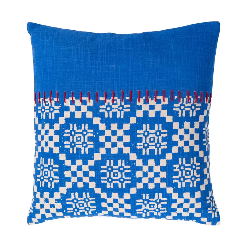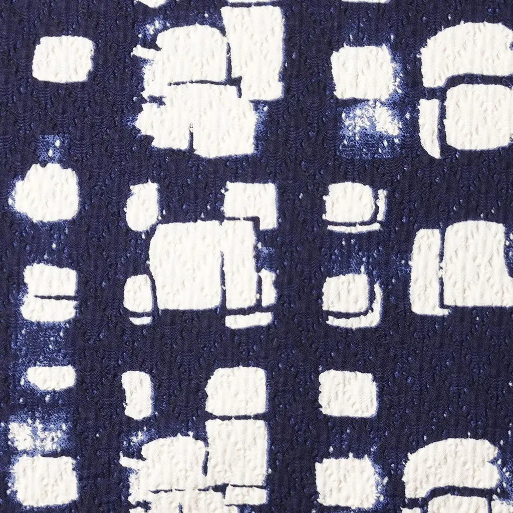 The indigo blue of the cotton jacquard pillow is etched away by the fluid white, creating a rippled effect that echoes the Aegean sea, seductive in its depths and mysteries.
