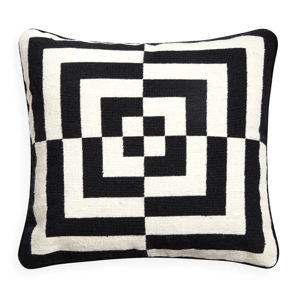 POP Art.Modernist and mind-bending, our Op Art needlepoint pillows POP. One creates a chic, modern moment, or try them together for eye-catching graphic edge that's perfectly plush. Embroidered by hand and backed in luxe velvet. Item #27811