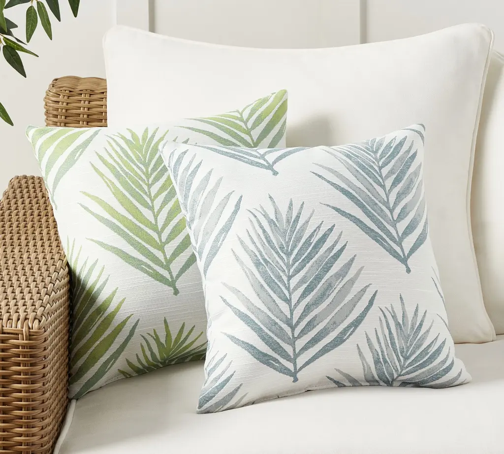 Sylvie has us in awe of its visible texture and soothing earth tones that mingle together oh so well. A slightly heathered background makes the frond motif come to life, adding an earthy element to your space. Mix and match them on a sofa or pick your favorites to set out on the patio at your next gathering.