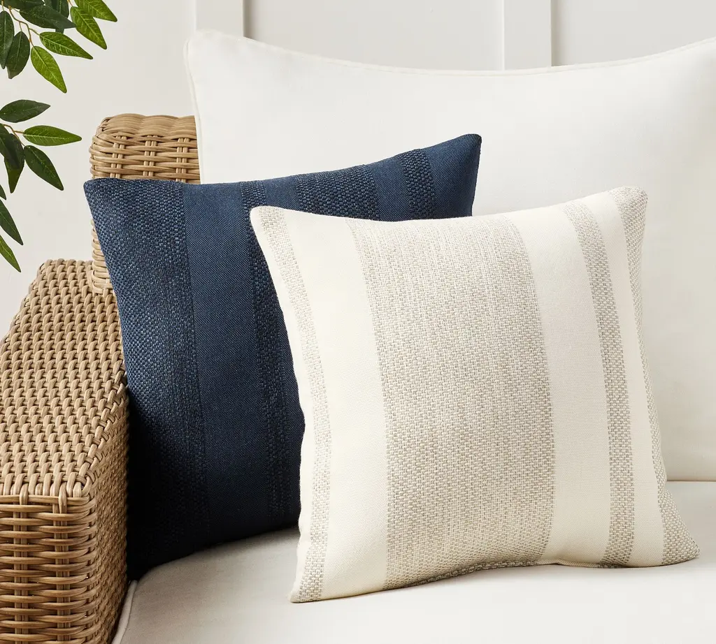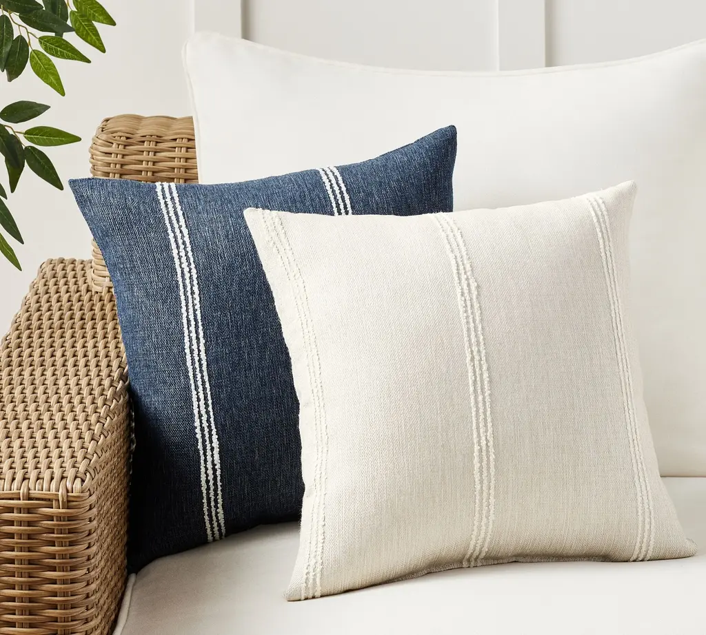 Sylvie has us in awe of its visible texture and soothing earth tones that mingle together oh so well. A slightly heathered background makes the frond motif come to life, adding an earthy element to your space. Mix and match them on a sofa or pick your favorites to set out on the patio at your next gathering.