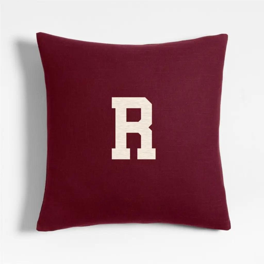 Add a playful pop of colorand a personalized touchto your bed, sofa or armchair with a pillow that's made to be monogrammed. The soft, slubby square is the perfect canvas for an oversized embroidered initial. Handwoven by skilled artisans, our organic cotton pillow in deep burgundy has a classic collegiate look tossed on a dorm room bed. Our exclusive monogrammable throw pillow includes your choice of a plush feather-down or lofty down-alternative insert.