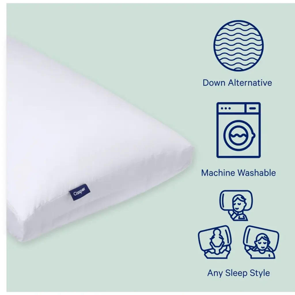 We invented a unique pillow-in-pillow design that's built to satisfy all sleepers. The Casper original pillow is both soft and supportive, so you don’t have to pick one or the other. We slept on over 60 different kinds of pillows from around the world to find the best fill types. The original pillow is filled with nearly a billion microfibers, so it is adaptive and will respond to your movements throughout the night. The outer pillow is a 100% cotton breathable percale weave. It increases airflow so you’re always sleeping cool. The original pillow is machine washable and dryable.