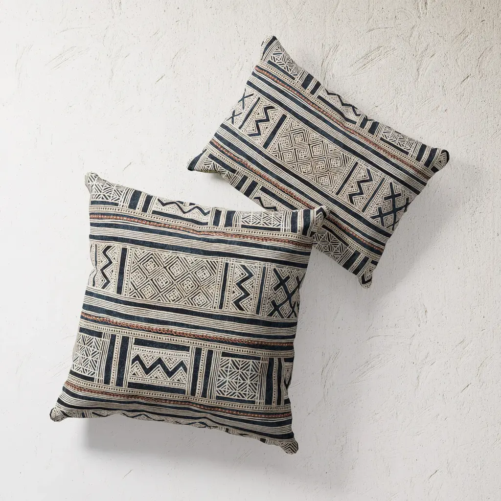 Designed in-house and inspired by fragments from our vast archives, the Indigo Inlet African Mudcloth pattern is intended to be mixed and matched for a richly layered space - whether indoor or out. Adorn a neutral sofa or chaise with our other blue-hued pillows for a tonal look. Each double-sided printed pillow is mildew proof and has UV and water resistant properties.