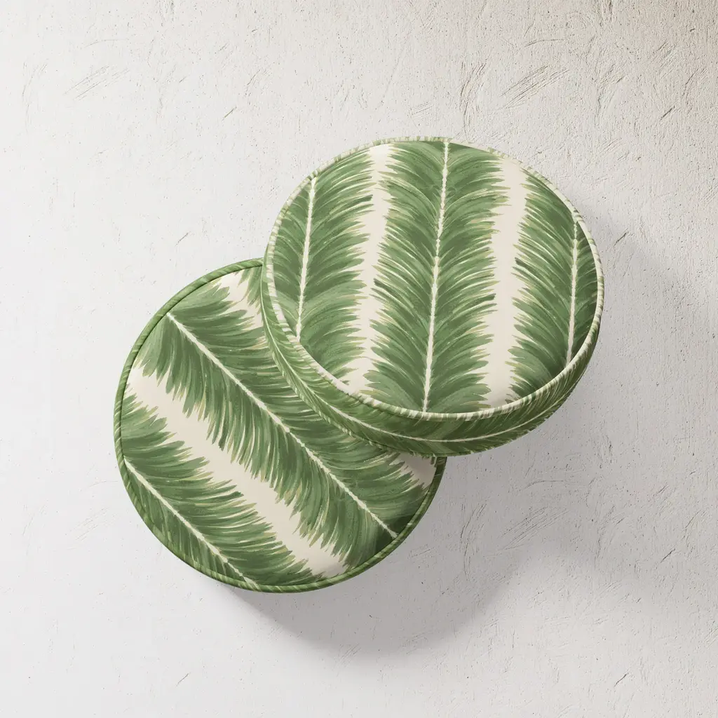 Designed in-house and inspired by fragments from our vast archives, the Palm Stripe palms fronds pattern is intended to be mixed and matched for a richly layered space - whether indoor or out. Adorn a neutral sofa or chaise with our other green hues for a tonal look. Each double-sided printed pillow is mildew proof and has UV and water resistant properties.