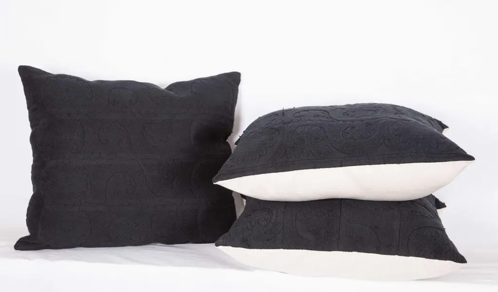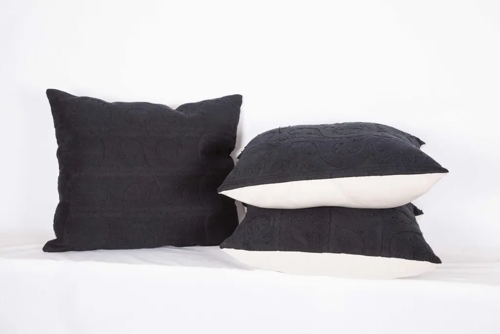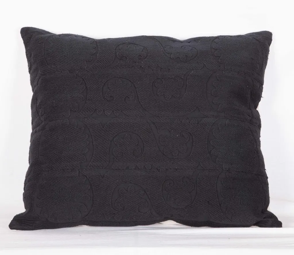 These Suzani pillow cases fashioned from vintage Suzanis that are overdyed. The results are here, a minimalist look with some texture.Linen in the backZipper closureDry cleaning is recommendedMeasures: 55x 61 cm / 21.65 x 24.02 in58 x 59 cm/ 22.83 x 23.23 in.56 x 63 cm/ 22.05 x 24.8 in.