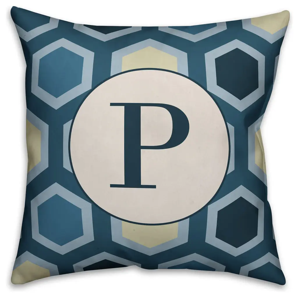 P Blue Hexagon Monogram Spun Poly Pillow, 18x18
