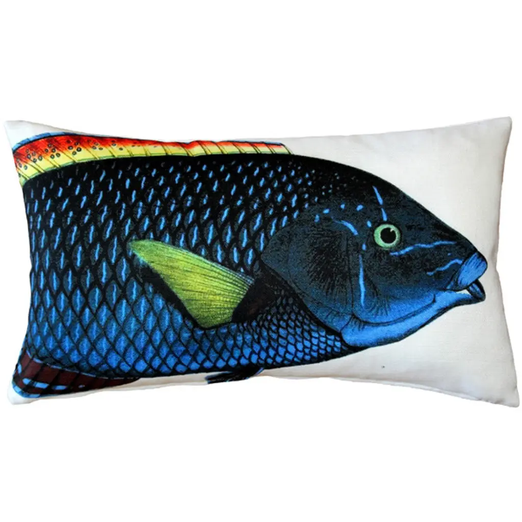Pair Of Betsy Drake Betsy's Lion Fish Outdoor Pillows 16 Inch X 20 Inch
