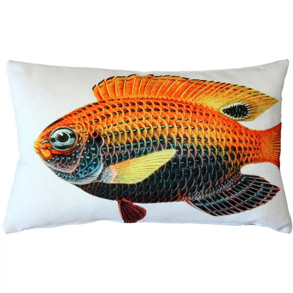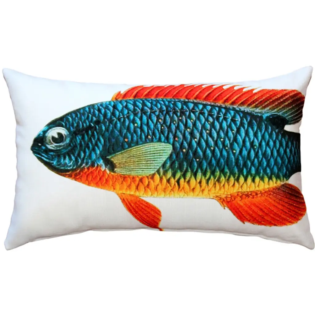 Polyester CoverPolyester FillingArtwork by Artist Betsy Drake and R.B. HamiltonGreat for PatiosMade in USAThis beautiful pair of Betsy''s Lion Fish print indoor / outdoor pillows are from Betsy Drake Interiors. Proudly made in the USA, each pillow features a wonderful watercolor print, based on original artwork by artist Betsy Drake. Each pillow measures 16 in tall, 20 in long, has a 100% polyester cover which resists fading and wear, giving you years of use, and is stuffed with polyester. Recommended care instructions are to spot clean only.