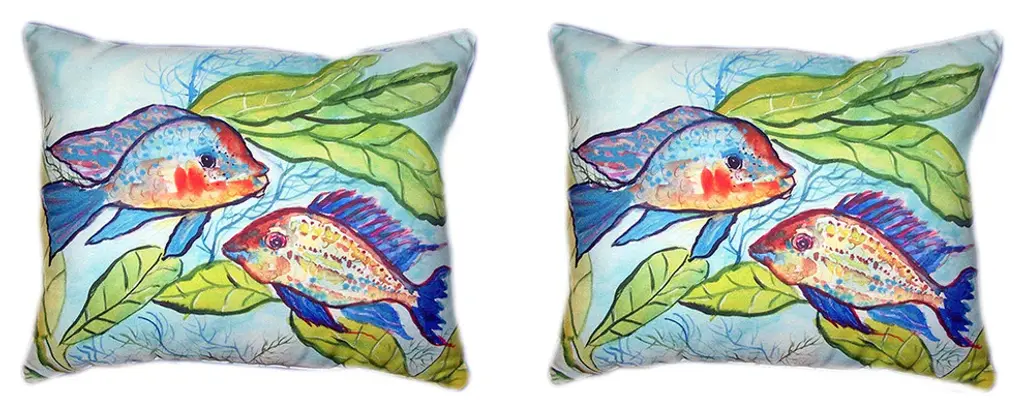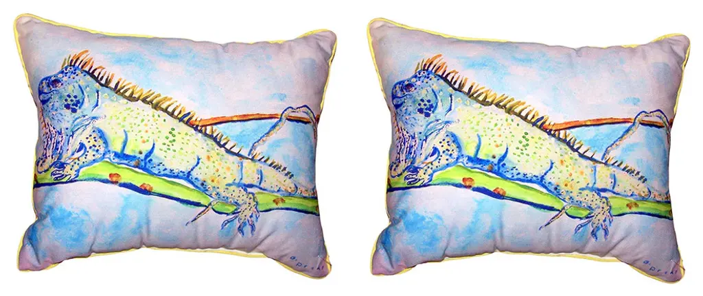 16 In. Long, 20 In. Wide100% Polyester Cover/FillingAdds a Beautiful Pop of Color to RoomsEnjoy Indoors or OutSpot Clean OnlyThis magnificent pair of Loggerhead Turtle print no cord indoor / outdoor pillows are from Betsy Drake Interiors. Proudly made in the USA, each pillow features a wonderful watercolor print , based on original artwork by artist Betsy Drake. Each pillow measures 16 inches tall, 20 inches long, has a 100% polyester cover, which resists fading and wear, giving you years of use, and is stuffed with polyester. Recommended care instructions are to spot clean, only.