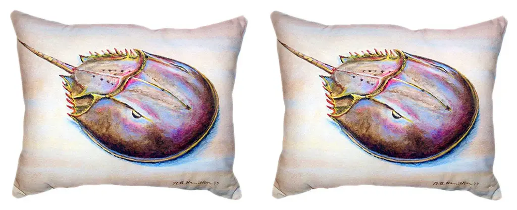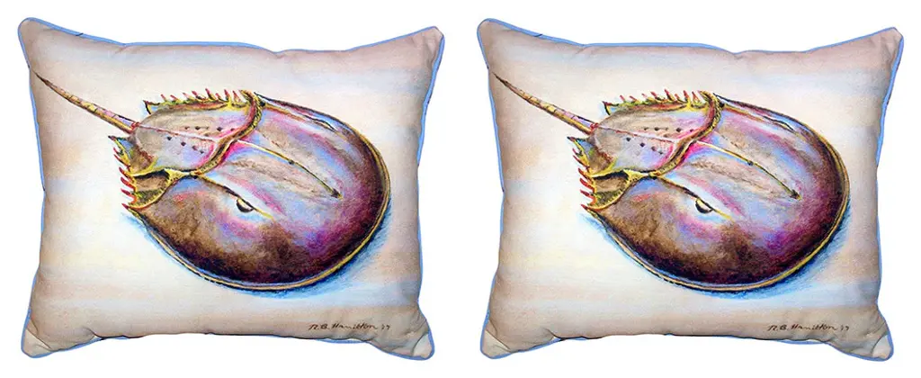 18 Inches By 18 InchesMade of PolyesterMade in USAMakes A Great GiftThis Pair of Betsy Drake Nautilus - Teal Large Indoor/Outdoor Pillows is made of polyester. Featuring original artwork from North Carolina artists Betsy Drake and R. B. Hamilton, it is made in the USA from quality materials. It makes a great gift.