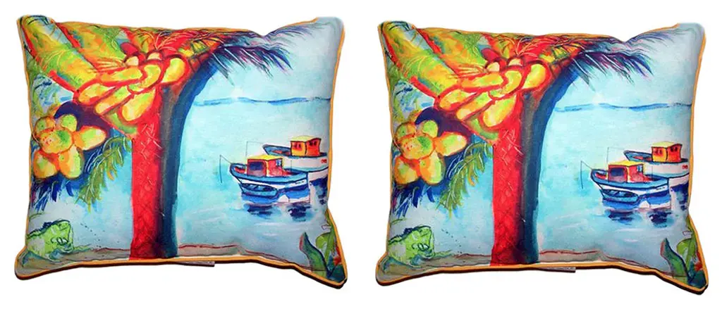 16 In. Long, 20 In. Wide100% Polyester Cover/FillingAdds a Beautiful Pop of Color to RoomsEnjoy Indoors or OutSpot Clean OnlyThis magnificent pair of White Pelican Head print no cord indoor / outdoor pillows are from Betsy Drake Interiors. Proudly made in the USA, each pillow features a wonderful watercolor print , based on original artwork by artist Betsy Drake. Each pillow measures 16 inches tall, 20 inches long, has a 100% polyester cover, which resists fading and wear, giving you years of use, and is stuffed with polyester. Recommended care instructions are to spot clean, only.