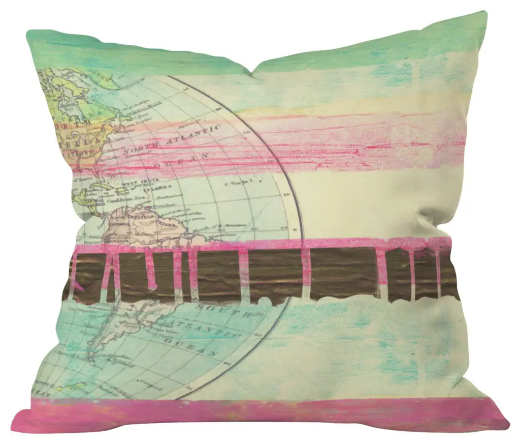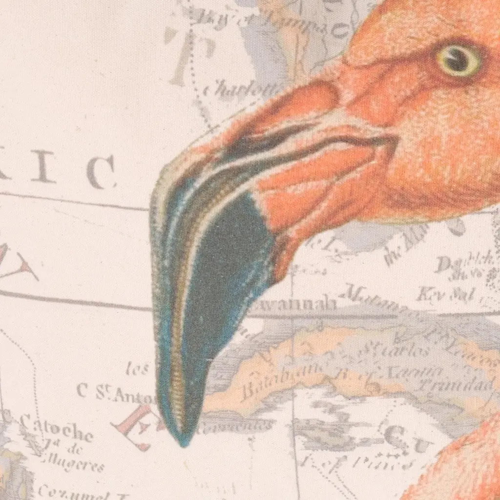 British Colonial style pair of canvas throw pillows with flamingos over antique style maps of the Caribbean.Priced Individually