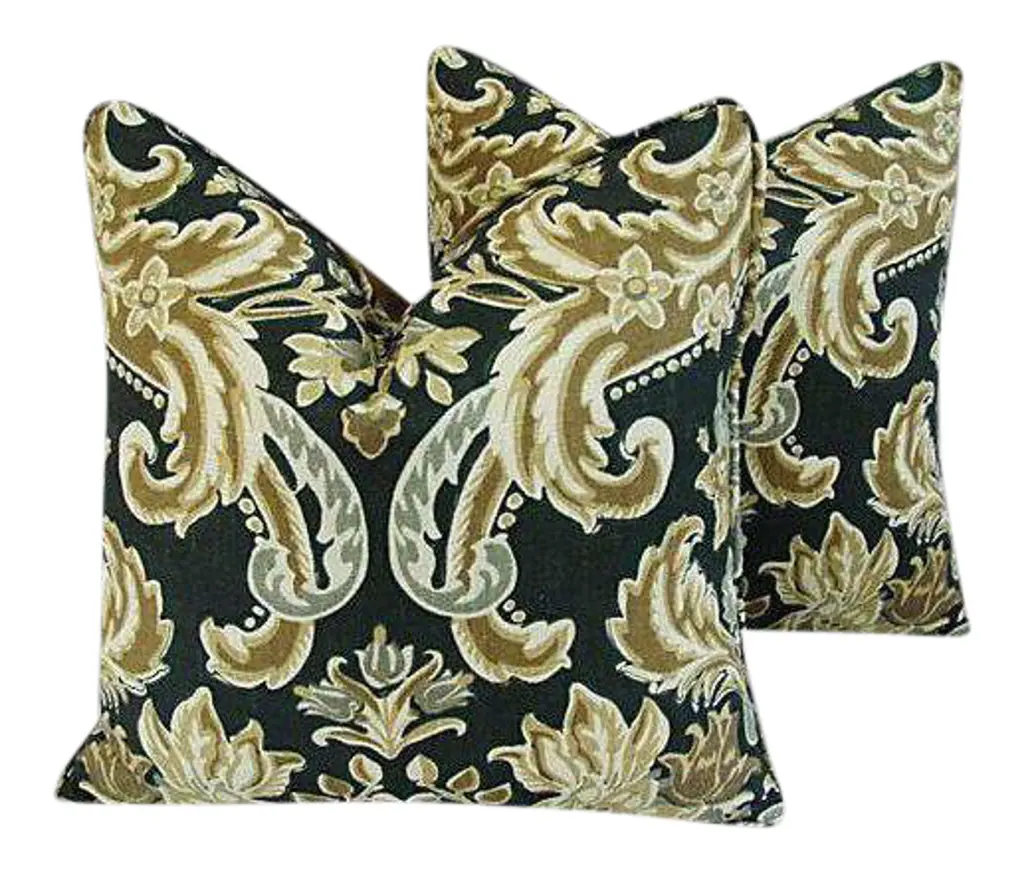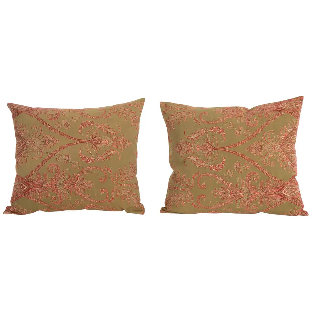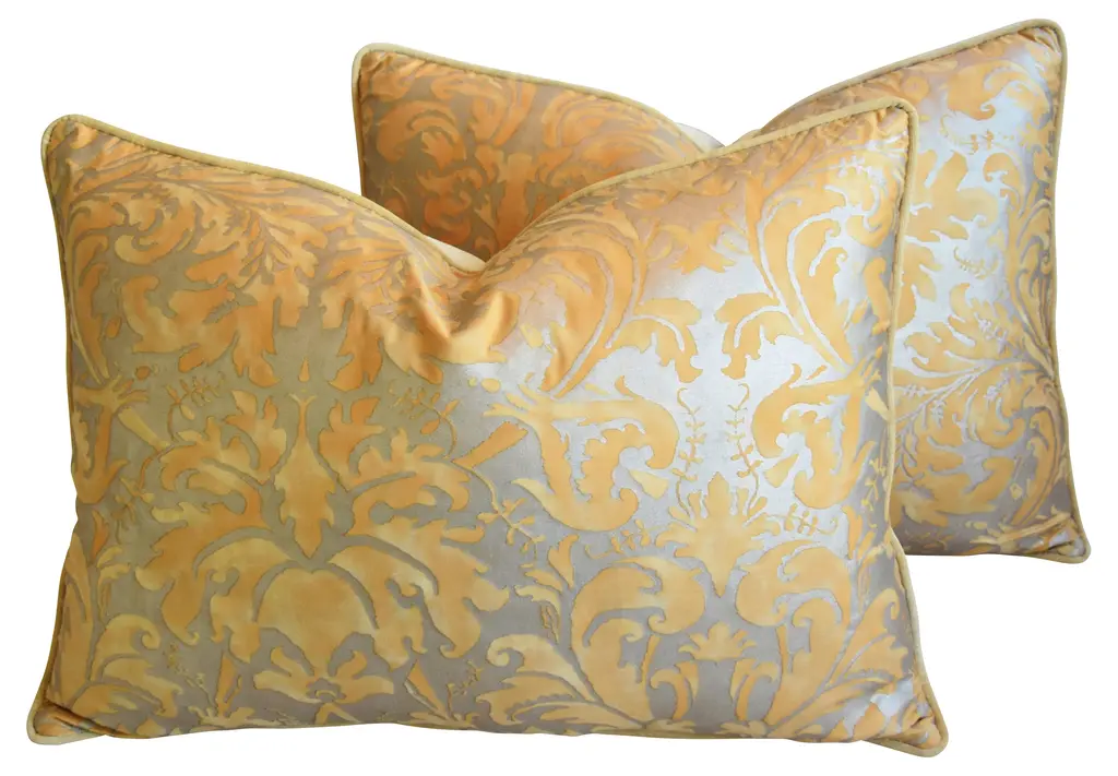 Pair of Fortuny cushions with fringe. Gray and bronze.