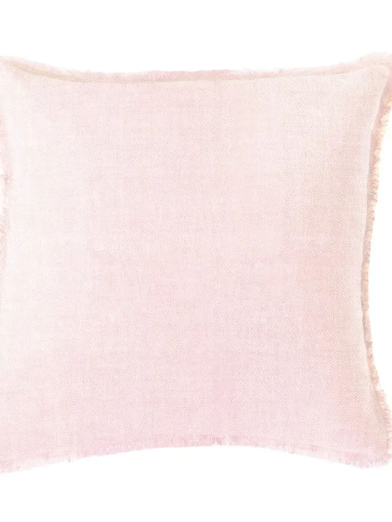 This Palm Beach Pink Fringe Linen Pillow is so soft- you won’t believe its linen! This yarn has a slight nub which gives it a beautiful natural texture. Edges have a self-fringe on all sides. Details Front & Back Color: Pink Front & Back side: 100% Linen (washed) Concealed zipper closure on back side. Hand washing or a delicate cycle with like colored fabrics recommended. Hang to Dry. Made in India Pillows are available in 3 options:Pillow Cover Only, with a Down Alternative insert, or with a Down InsertDown Alternative InsertBenefits: Allergen free, Better back support, Retain their shapeInside Fill: 1.2 denier x1.25" polyester gelOuter Shell: 65% polyester/ 35% white cotton blendMade in the USA Down InsertBenefits: Durable, Easy to fluff and re-style, Retains heatInside Fill: 95% gray duck feathers and 5% goose downOuter Shell: 233-thread count 100% cotton fabric Made in the USA