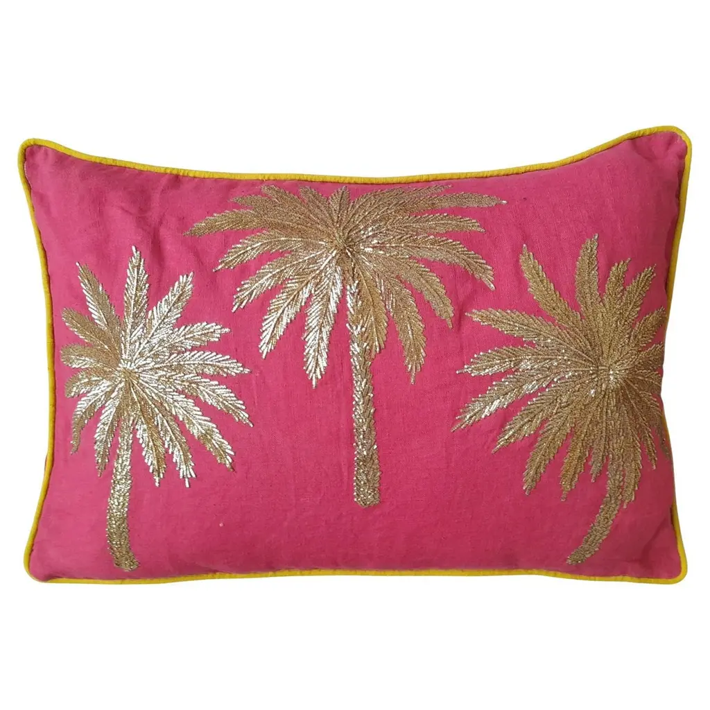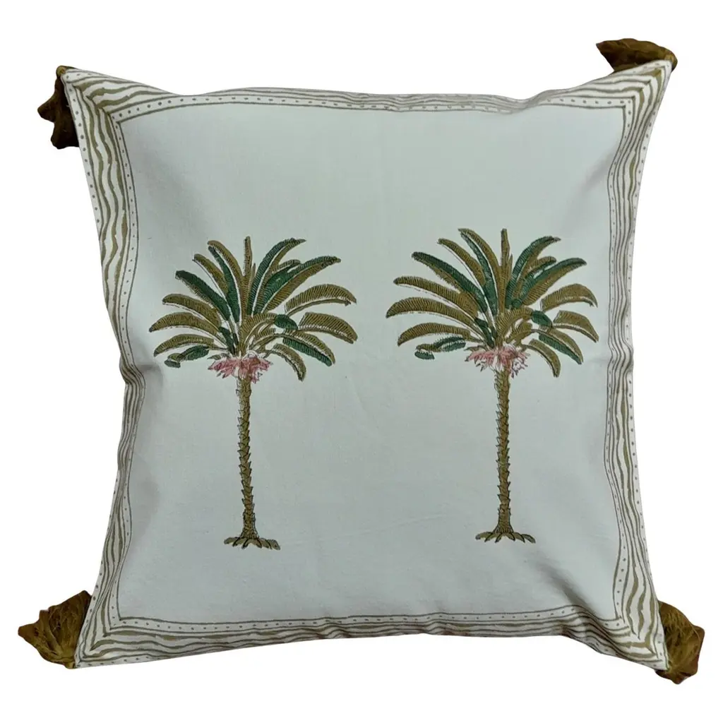 Bring a hint of the tropics to your home with our palm tree cushion. Featuring a beautifully detailed palm tree design, complemented by a hand block printed border and finished with playful tassels, on a soft cotton base. This cushion adds a touch of relaxed elegance to any room.