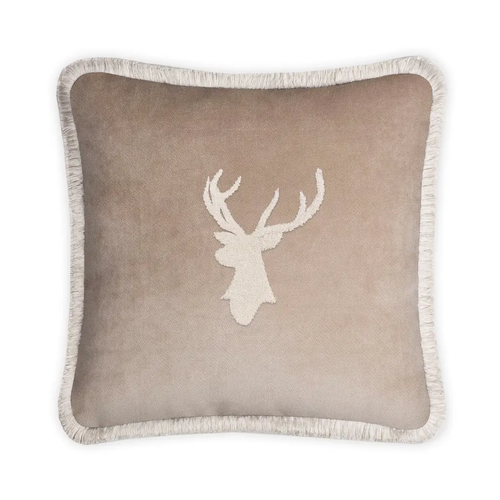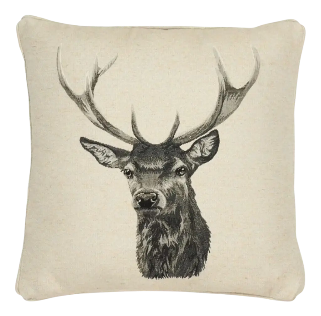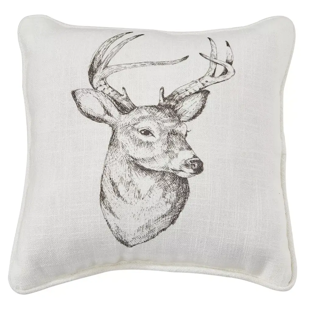Bring the beauty of nature into your home with this charming decorative pillow. Featuring a detailed illustration of a majestic deer, this pillow adds a touch of rustic elegance to any living space. The neutral off-white color palette allows it to seamlessly blend with various decor styles. Crafted with care, this 10-inch pillow offers both comfort and style. Its soft texture invites you to cozy up on the couch or add an extra layer of plush support to your favorite chair. Whether you're a nature enthusiast or simply appreciate timeless designs, this deer-printed pillow is a delightful addition to your home accents.