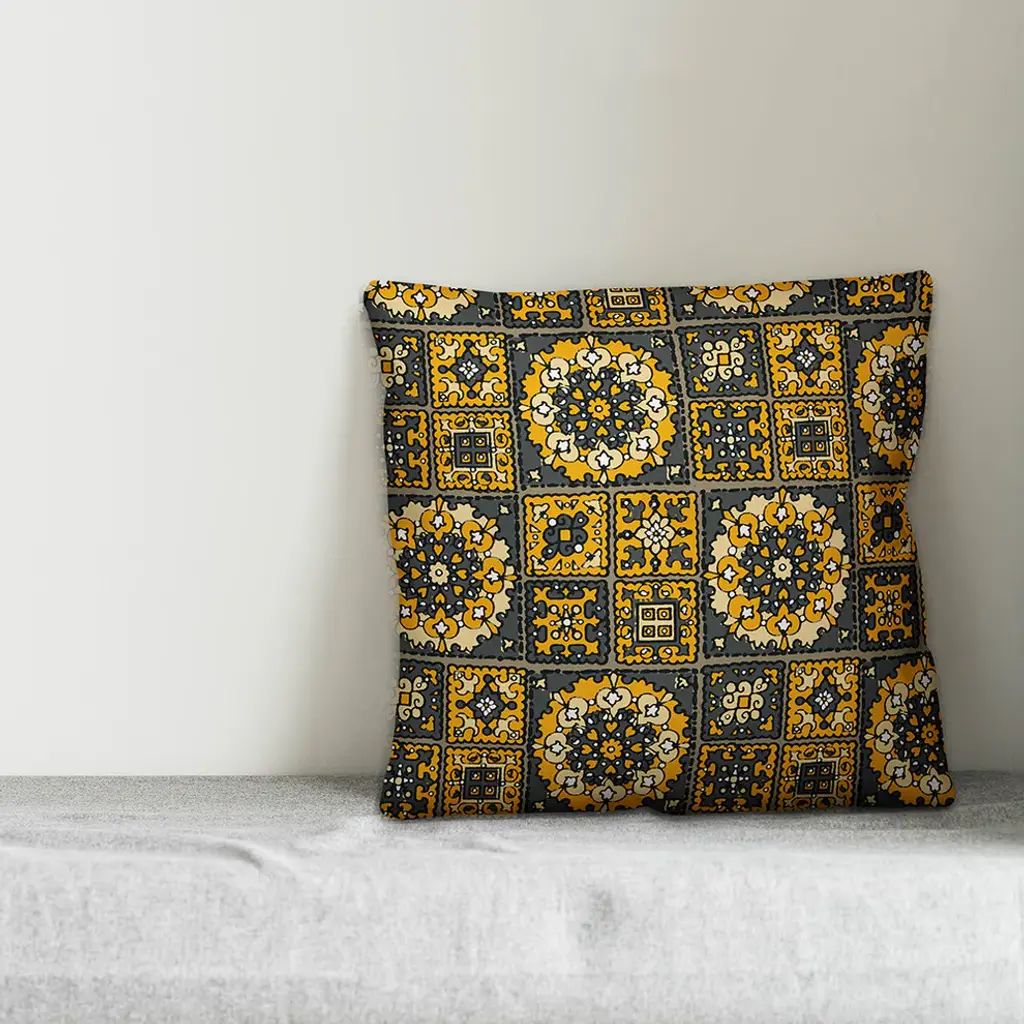 Patchwork Mandala, Yellow And Gray Outdoor Throw Pillow, 18"x18"