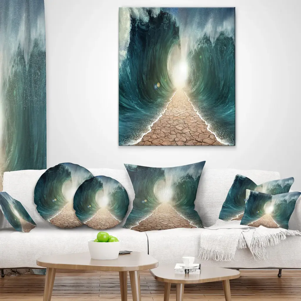 Pathway Through The Parted Seas Seashore Throw Pillow, 16"x16"