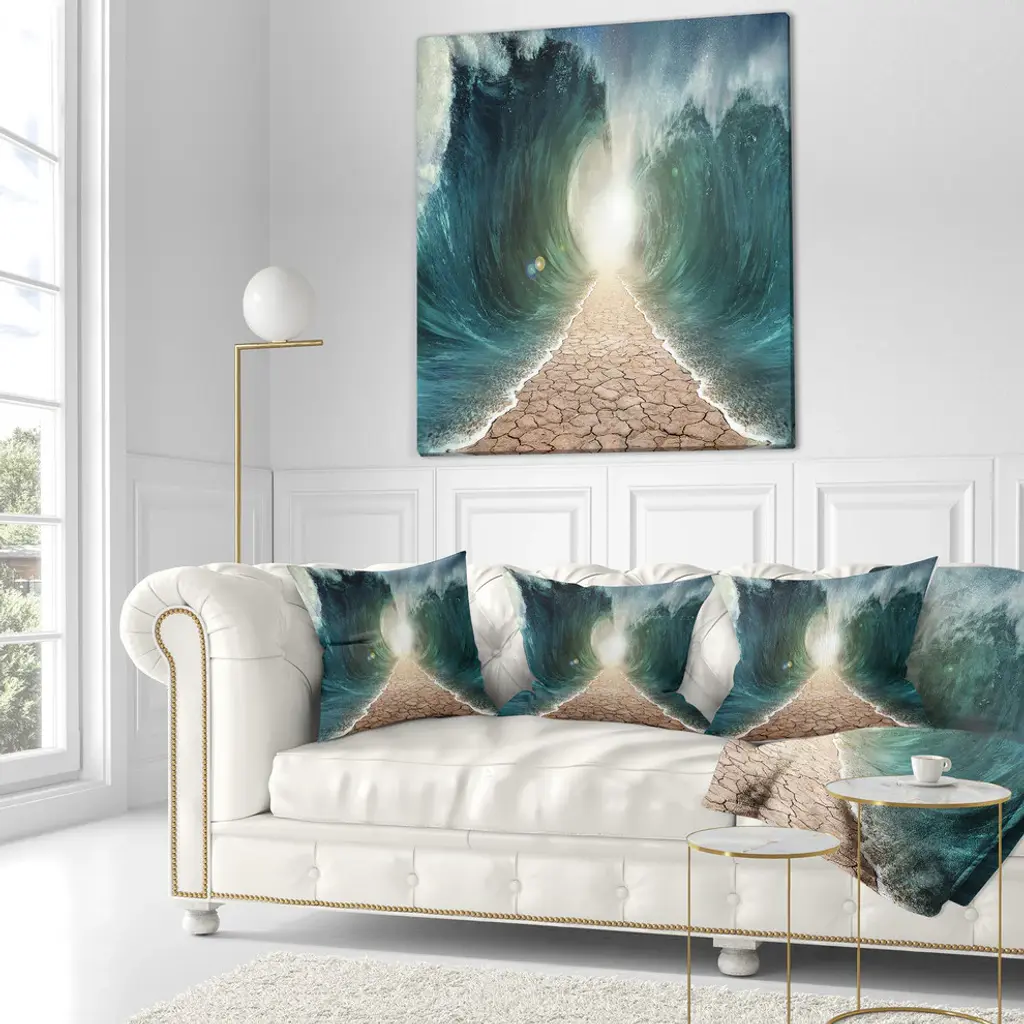 Pathway Through The Parted Seas Seashore Throw Pillow, 18"x18"
