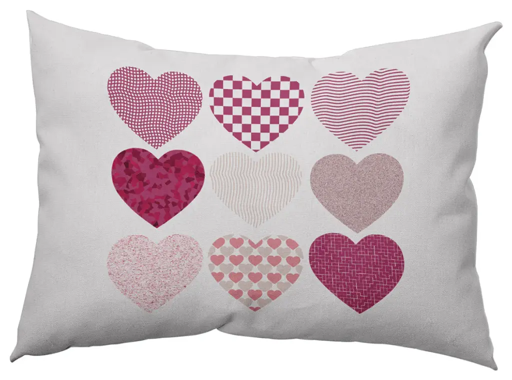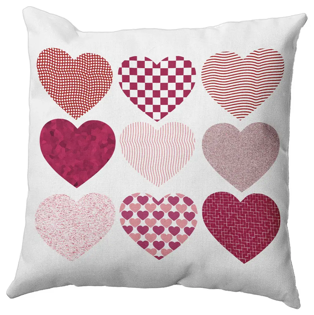 Love is in the air! Share your love this season with the Patterned Hearts Pillow from our Valentine''s Day Collection. This festive and charming pillow will add the perfect touch of love to your sofa, armchair, or bed needs this February! This decorative pillow is printed on both sides and crafted with a soft, durable polyester exterior, and perfectly filled with down alternative for a crisp look and a comfortable sitting experience. It is sewn closed with a knife edge and can be easily spot cleaned or dry cleaned.