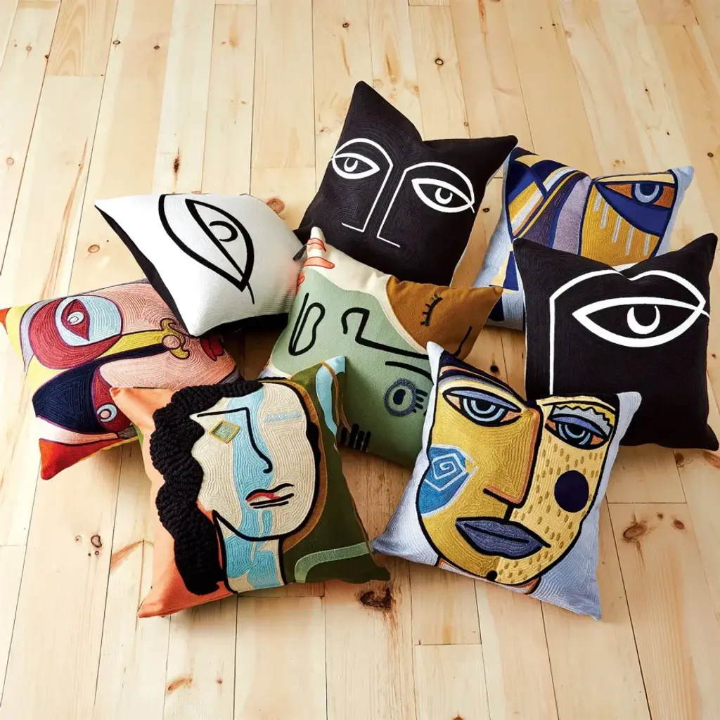 Abstract shapes and a blue and yellow color scheme come together to create our Maya Pillow. The face arrangement was inspired by the brilliant works of Picasso and interpreted in a graphic and colorful way. From a fashion forward perspective, Global Views offers accessories, furniture, statement lighting, and an assortment of rugs and mirrors to add beauty and joy to your home.