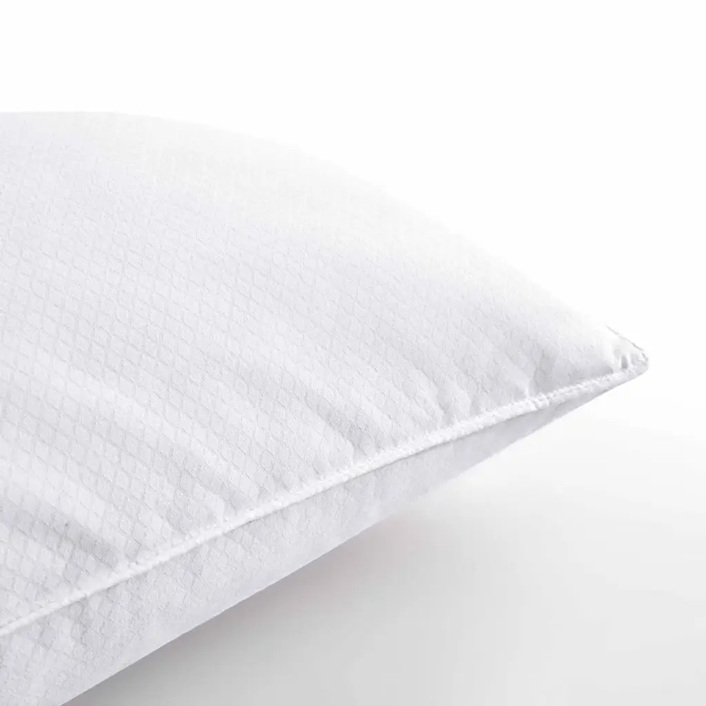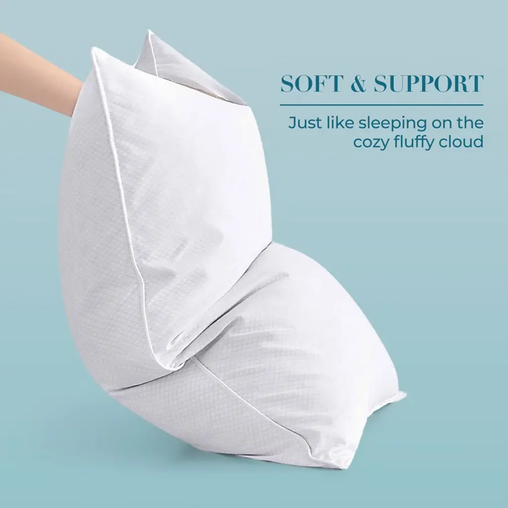 Indulge in the luxurious comfort of our premium down feather pillow, crafted for the ultimate sleeping experience. With its unique oval gusset design, this pillow offers maximum loft, medium firm support, and improved breathability, ensuring you wake up feeling refreshed and rejuvenated every morning.Made from a plush blend of feathers and down, our hotel-quality pillow provides unparalleled comfort while minimizing any potential feather discomfort. The innovative Phase Change Materials (PCM) technology regulates body temperature, keeping you cool and comfortable even on the hottest summer nights.Reinforced stitching and a double-layered fabric design ensure durability and long-lasting quality. Plus, the pillow is conveniently machine washable, making maintenance a breeze. Treat yourself to the luxury you deserve with our premium down feather pillow.