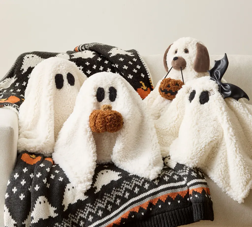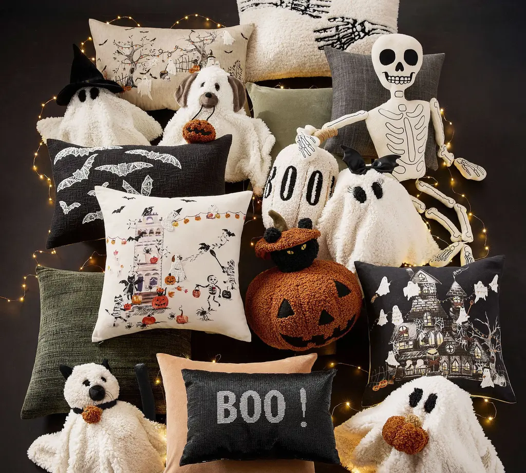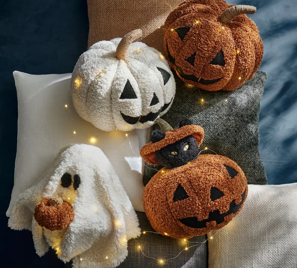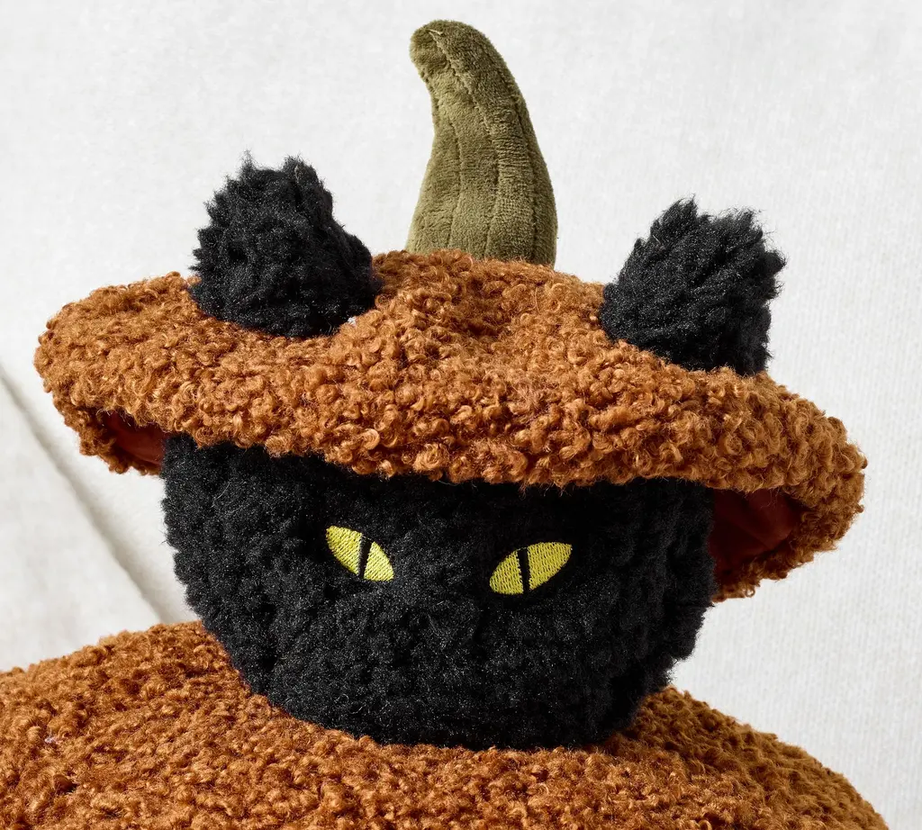 Add a spirited touch to your Halloween decor with this black cat peeping out of a jack-o-lantern. Made from our favorite teddy-style fabric, it’s an adorable addition to your couch or kid’s bed. Pair with our other Halloween pillows for a frightfully fun scene.