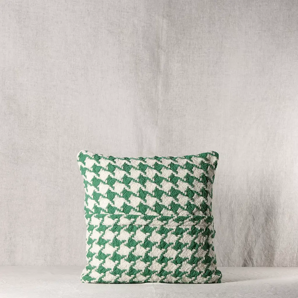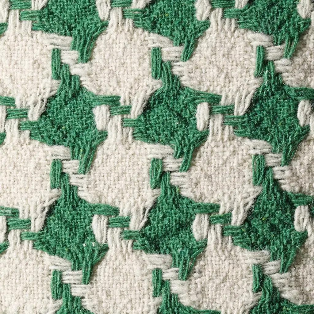 The Peripezia's exaggerated pied de poule design is made in a combination of wool, polyester, and polyamide, fibers that react differently when boiled, giving the fabric an unusual character. The compelling texture and pattern create an elegant visual labyrinth within which the gaze is lost.