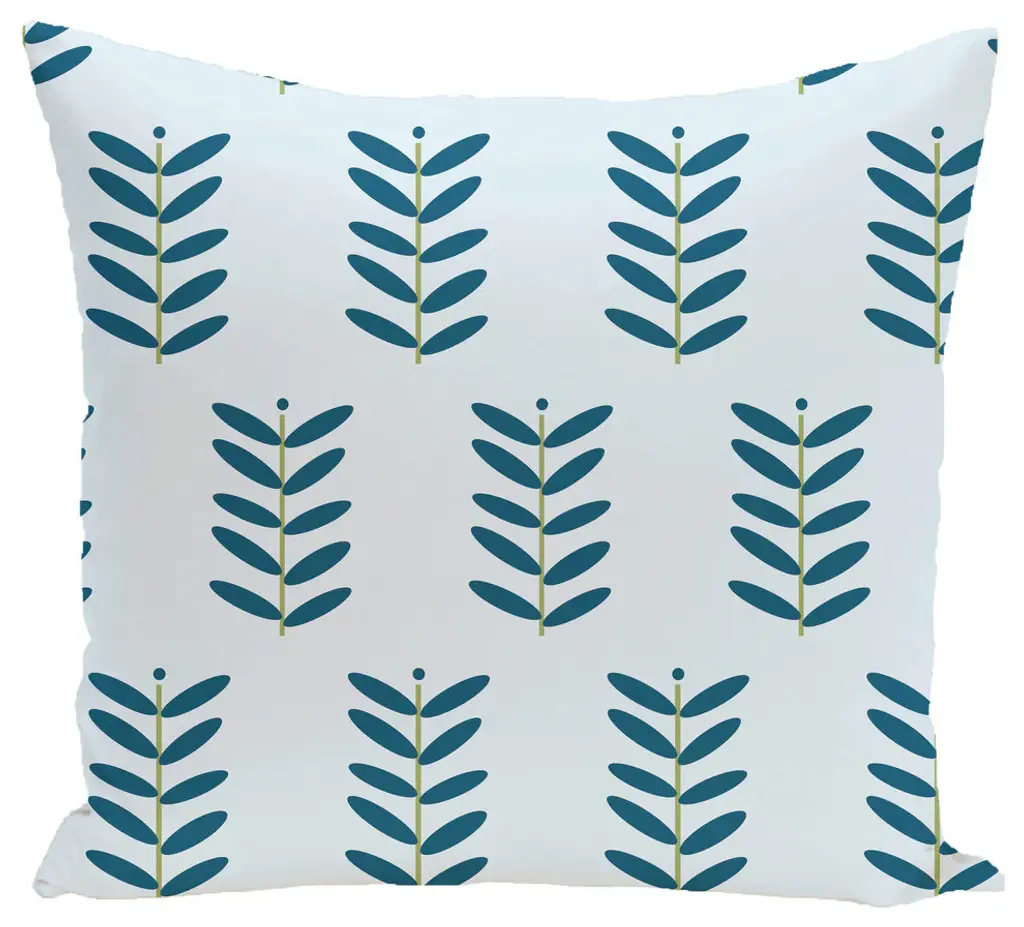 Petal Pusher Floral Print Outdoor Pillow, Jade, 20"x20"