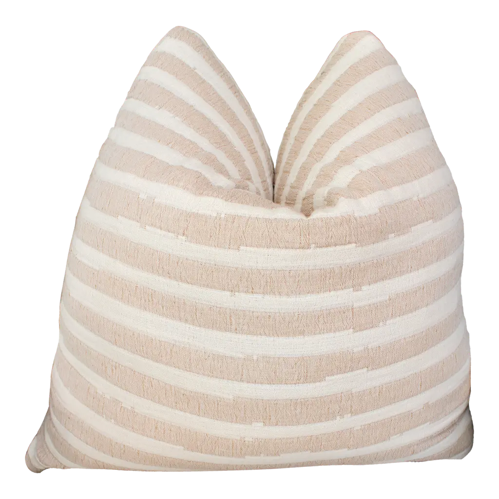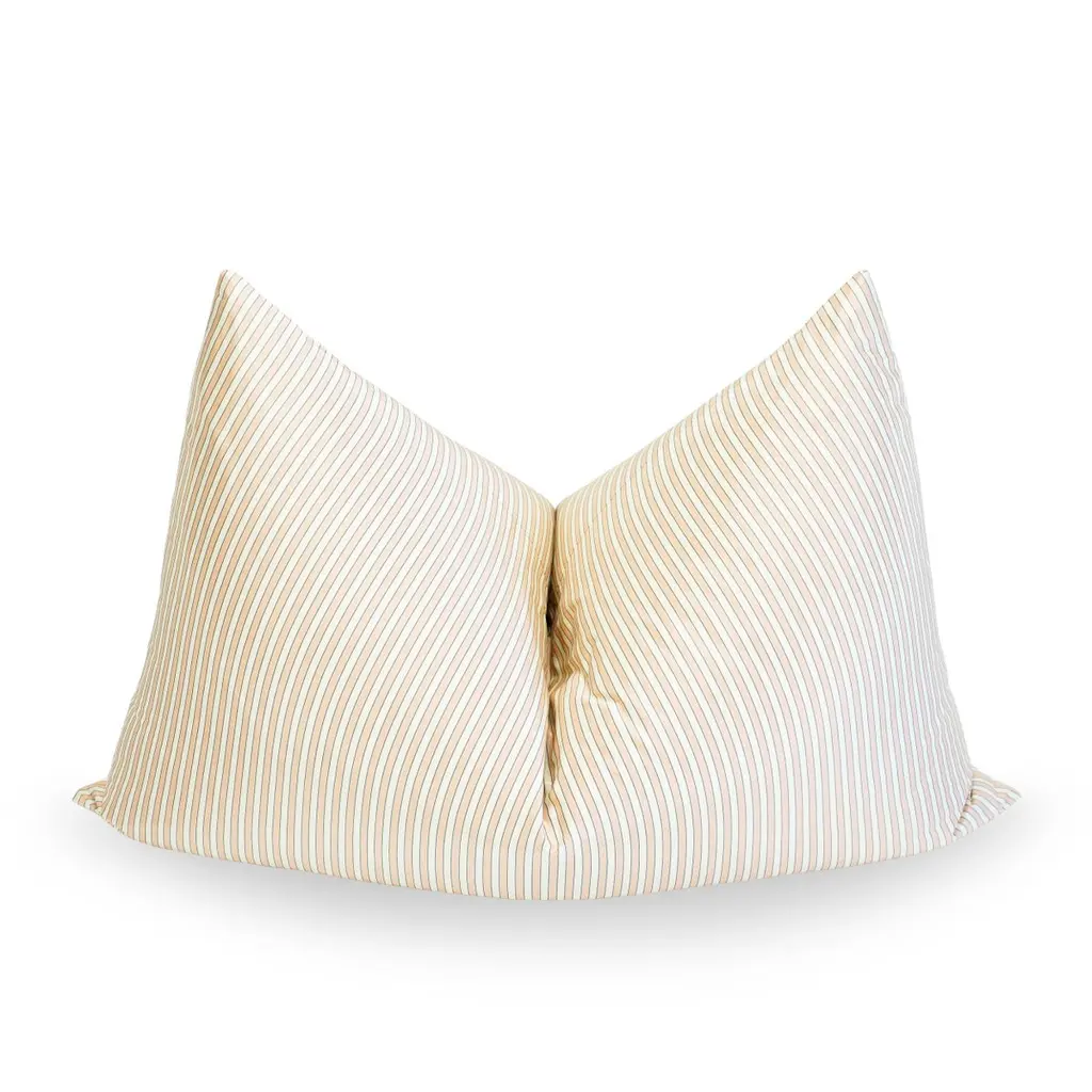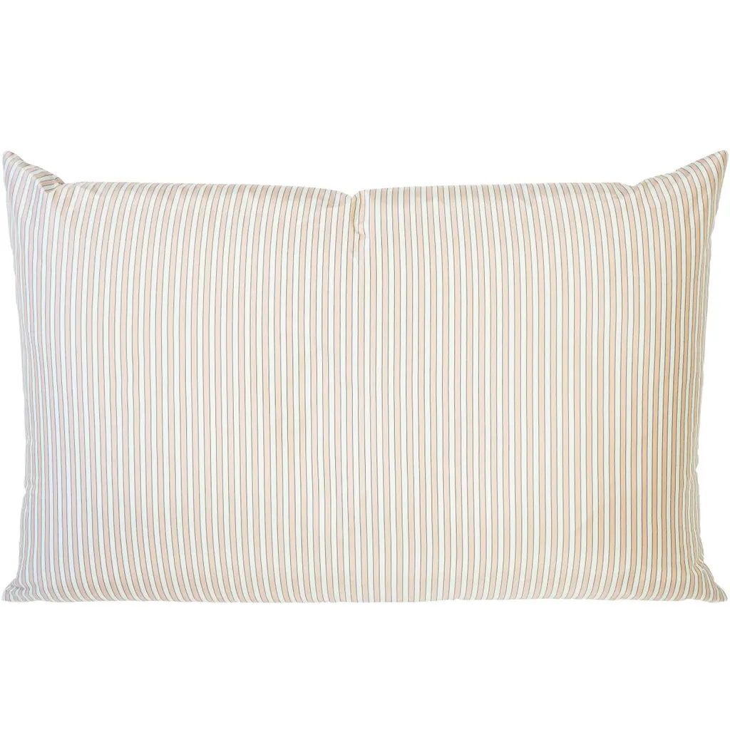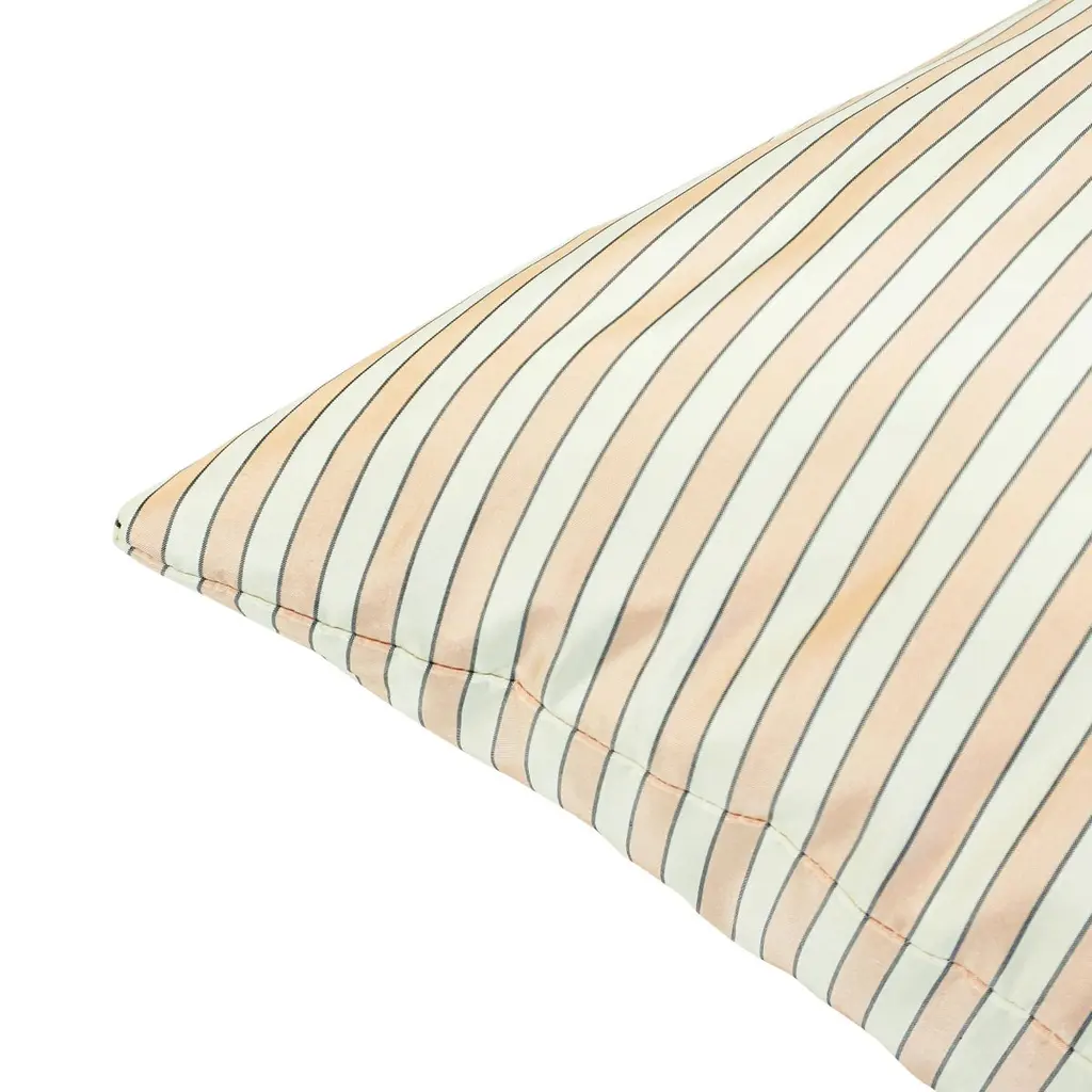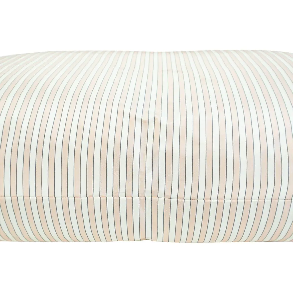 A satiny fabric with soft petal pink stripes outlined with gray threading on a creamy ground. Pillow can be customized in any fabric. As for current availability of pillow in fabric as shown. Measurements:Outside: 40” W X 26” HPrice As Shown: $725 eachCOM Price: $420 eachCustomization may change price.How We Work:Made to order by Connecticut-based furniture design and manufacturing company The Tailored Home. Submit your customization desires by 1stdibs messenger for a quote. After orders are placed our workshop manager creates a visual work order for your approval for quality assurance.Customization options:Dimensions can be customized.The fabric shown may come in more colors. We also carry thousands of other materials and can send you samples and fabric pricing upon request. We accept your fabric for a COM fee of 5% of the cost of the piece. Welting, piping, tape or trim can be added. Different species available for pieces with exposed wood and can be painted & lacquered in any Benjamin Moore color (for additional charge) or stained in one of our stain options. Custom color matches cost $75 per sample.We accept inspiration photos of pieces you like.