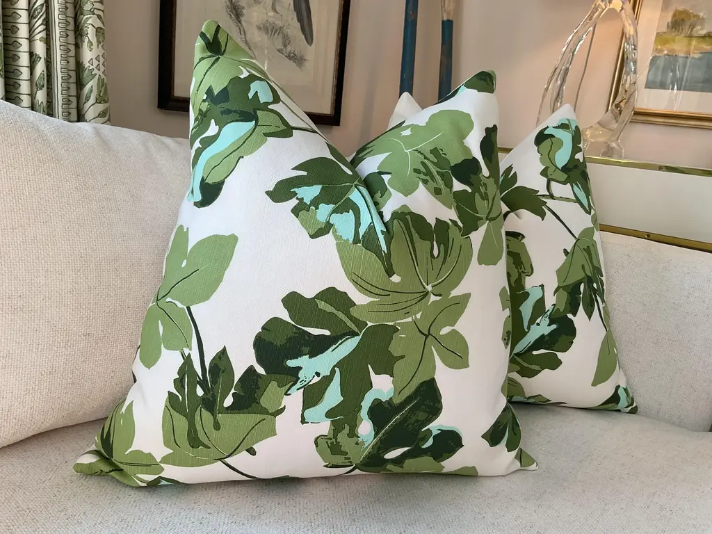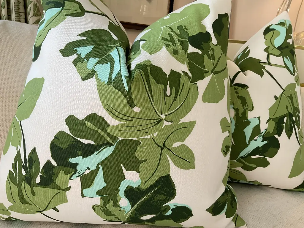 Peter Dunham Iconic Fig Leaf In Original Indoor/outdoor Pillows 22” With Inserts - A Pair
