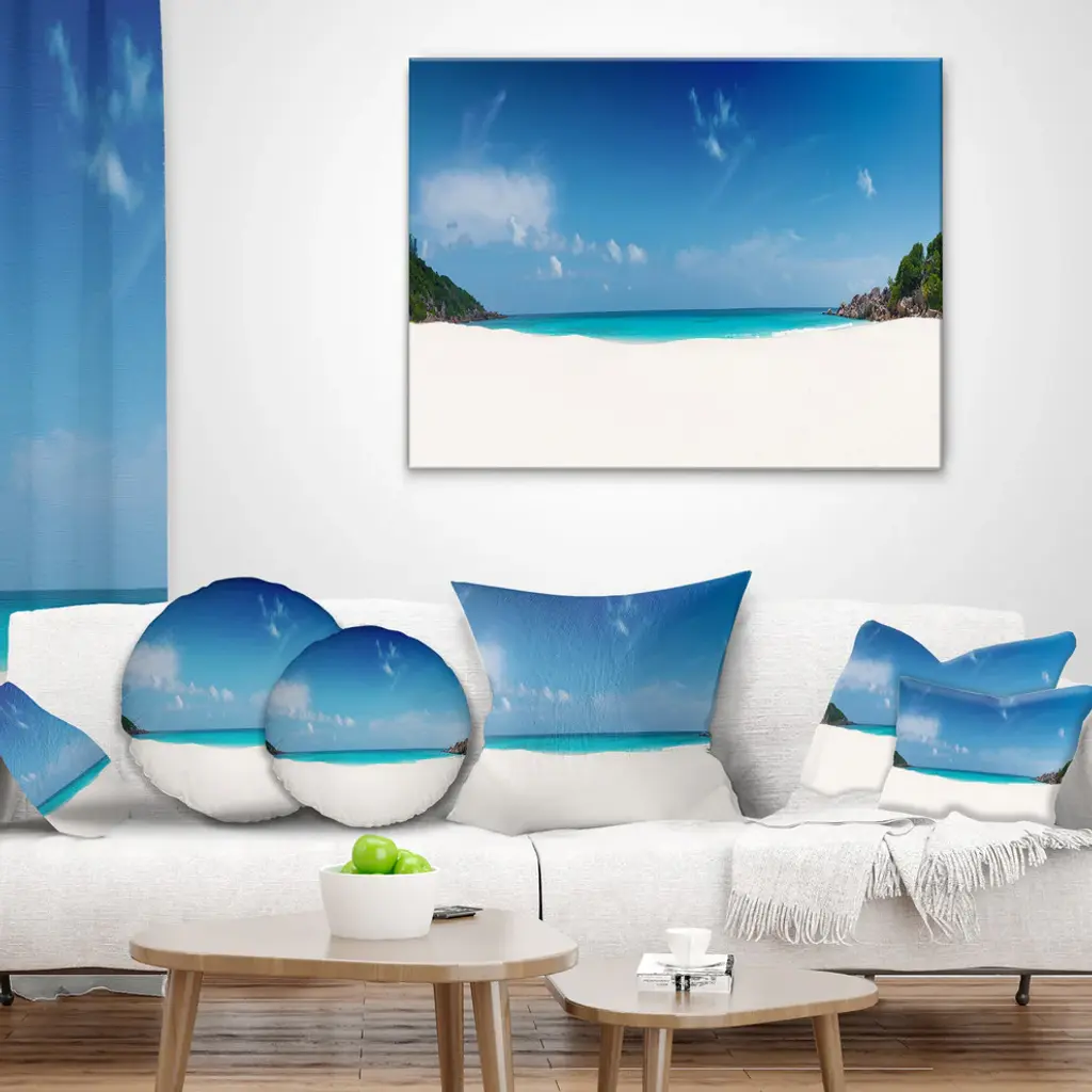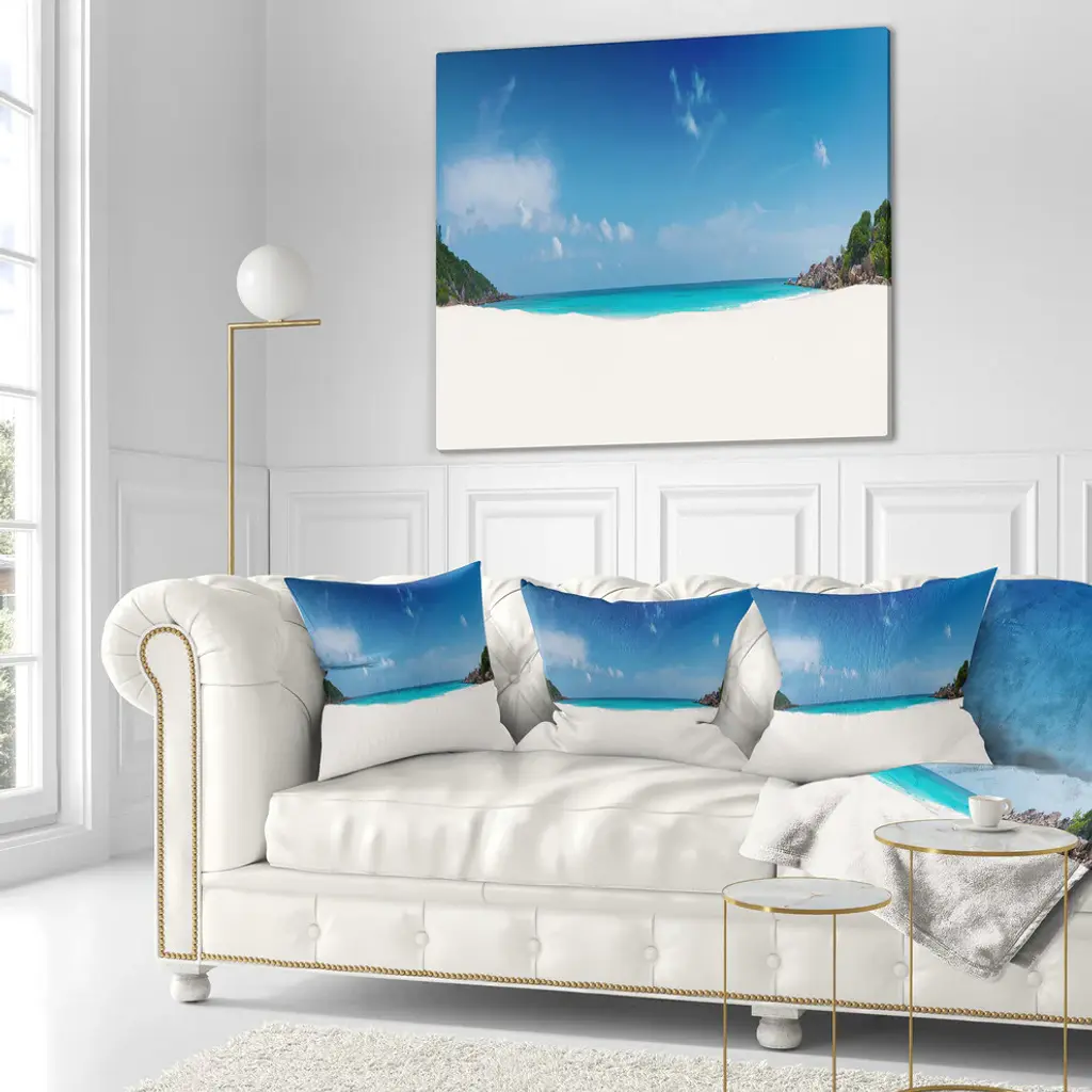 Petite Anse Beach La Digue Island Seascape Throw Pillow, 16"x16"