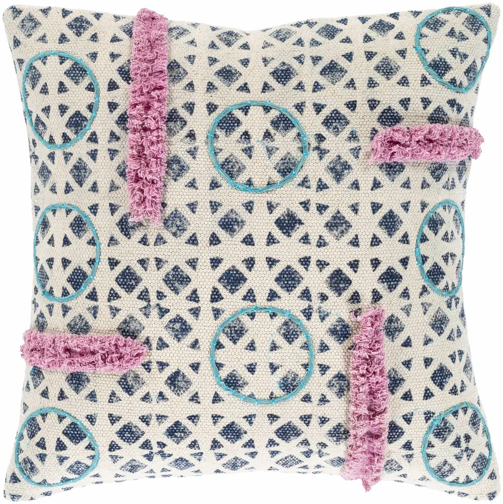 Phoebe 22 X 22 Inch Beige/bright Pink/dark Blue/teal Pillow Kit, Square