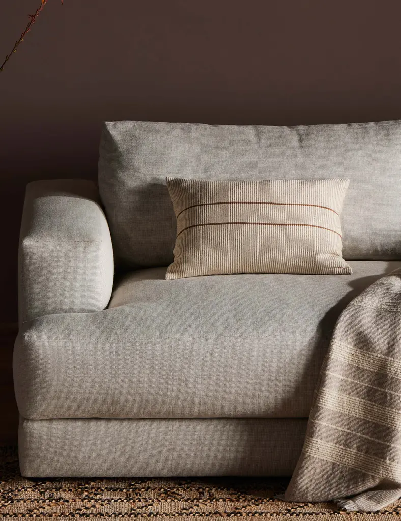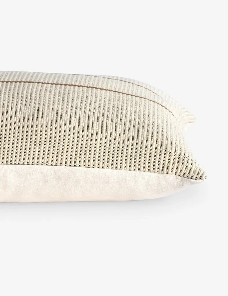 The Pico throw pillow is from a small-batch collection, handcrafted by skilled weavers in Mexico using a traditional technique. Each piece is made unique by subtle variations showcasing the artisan process. Two stripes set off a ribbed design in this texture-forward accent pillow.
