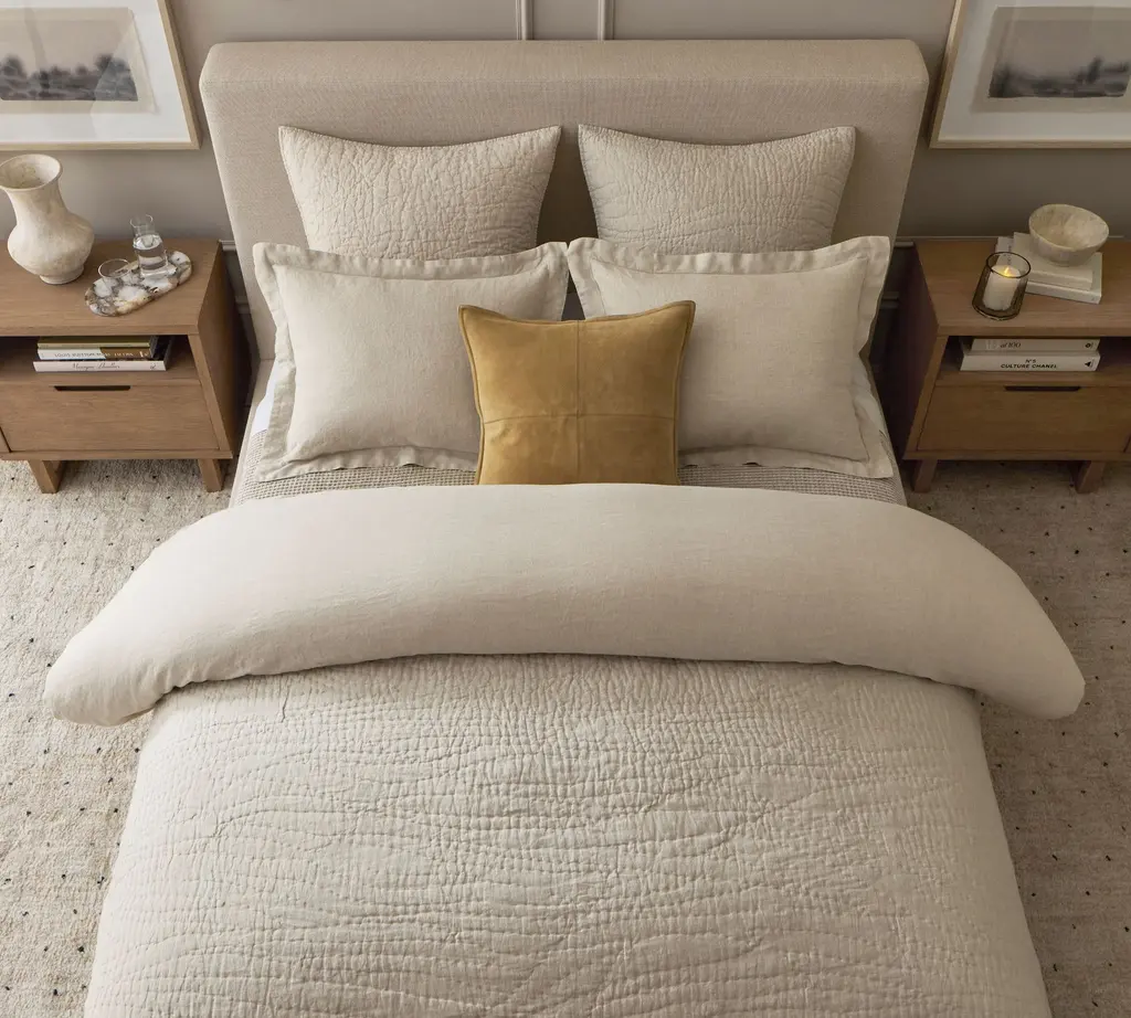Crafted of linen with a decorative topstitch, this adds a stylish accent wherever you need a little extra texture. We love how the solid backing offers two looks in one; both sides layer seamlessly with other patterns and prints to create a beautiful pillowscape.