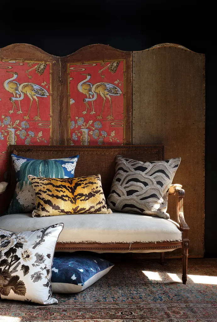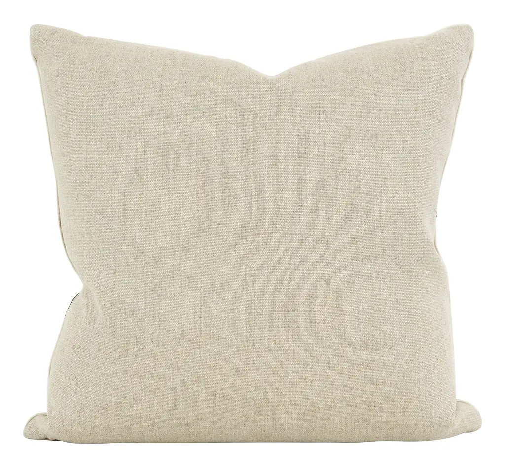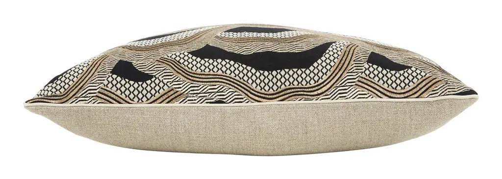 Add a pop of abstract pattern to your space with our Piedras Pillow. This luxe layer comibnes fluid lines, geometric designs, a goes-with-everything neutral palette and shiny gold thread accents to create an undulating, organic motif that is reminiscent of a far-off mountain range. We’ve paired it with a neutral linen backing fabric, matching cream silk piping, a hidden zipper closure and a soft down and feather pillow insert for a plush feel. Sure to stand out wherever it goes, Piedras would be perfection all on its own or mixed in with other chic and sophisticated pillows and textiles on the sofa or bed. •linen and rayon blend front •neutral linen backing •cream silk piped edges •hidden zipper closure •down and feather insert Dimensions •22" x 22"