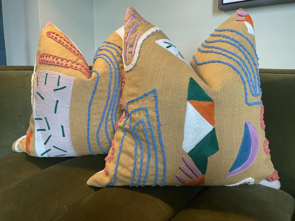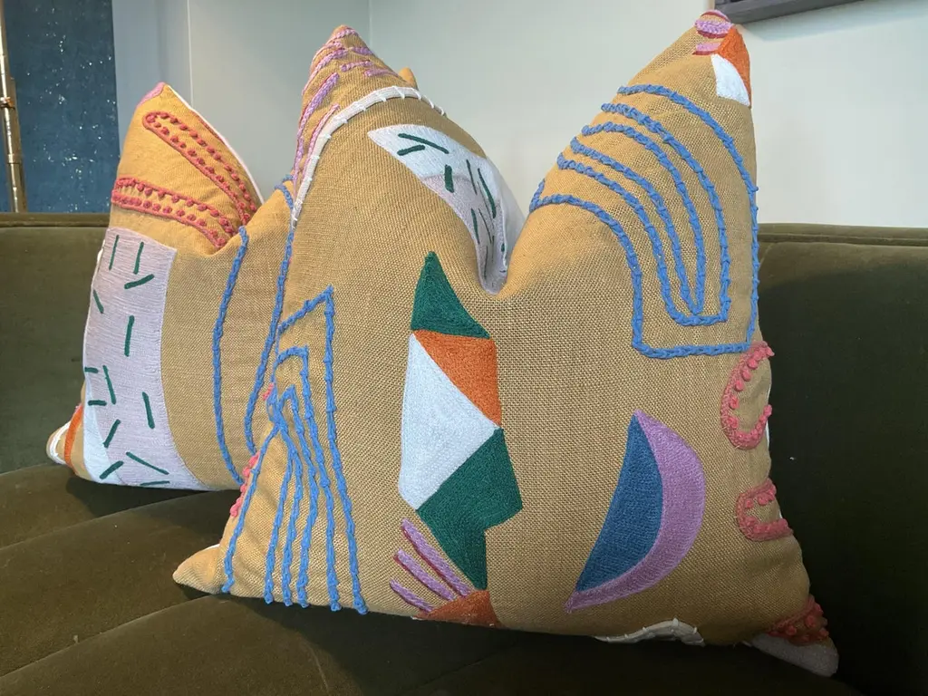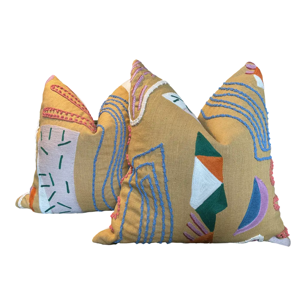 Pierre Frey Farrah PillowFabric from the Pierre Frey “Farrah” collection, the Sprinkles colorway is a vivid, lively textile that blends artisanal craftsmanship with a playful yet refined aesthetic. Hand‑embroidered in rope and ribbon, the pattern is free‑spirited and modern, with joyful pops of color that enliven any space.Backed in off white linen unless both sided option is selected. Pattern will vary.An absolute work of art.Each pillow is carefully crafted to showcase the fabric's exquisite pattern. We've paired the Farrah front with a complementary backing and finished it with a discreet invisible zipper.By choosing this Pierre Frey pillow, you're not just decorating – you're investing in a piece that combines timeless sophistication with modern craftsmanship. Elevate your home with this stunning blend of texture, pattern, and light.These will come as a 22" pair with plush- down inserts.
