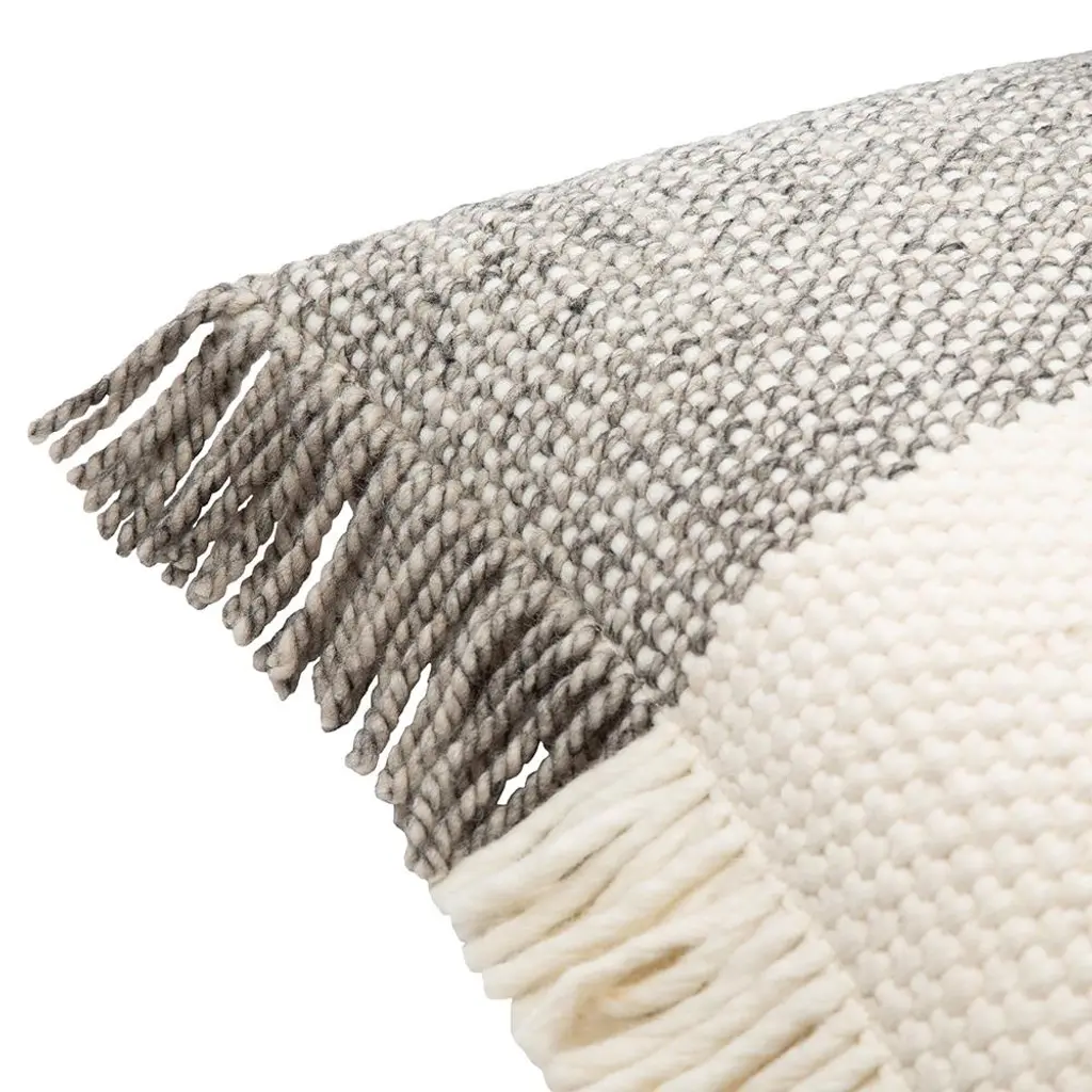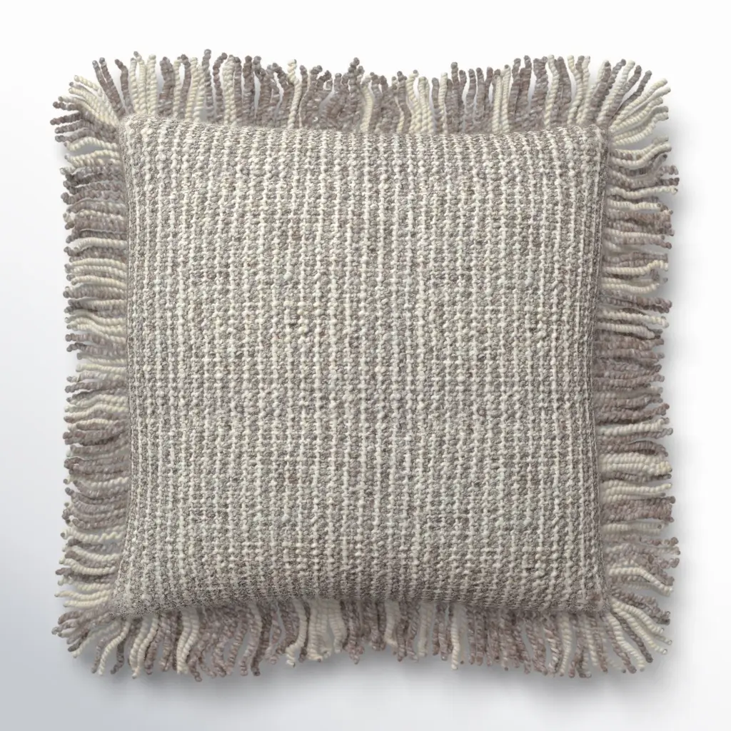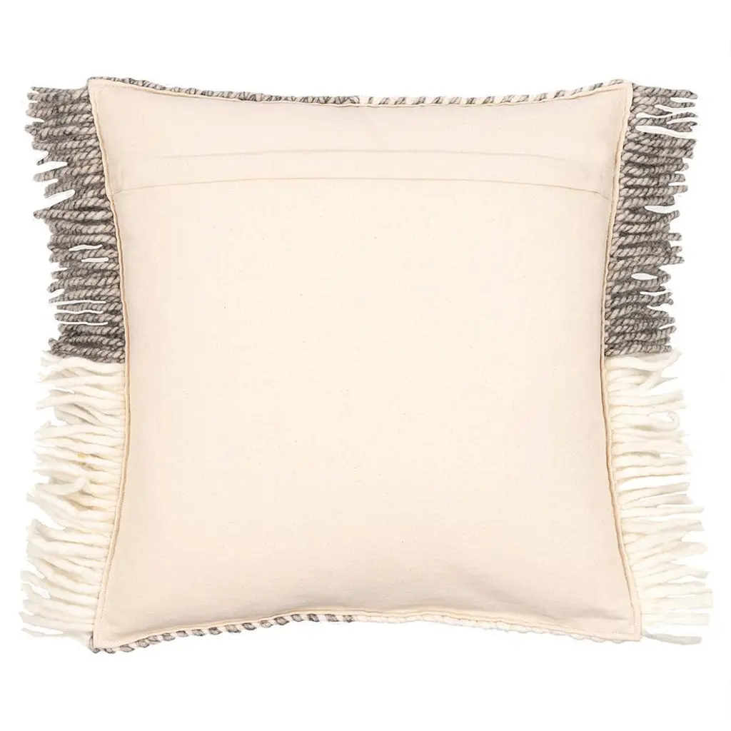 Pietro Coastal Beach Cream Wool Fringed Decorative Throw Pillow - 22x22