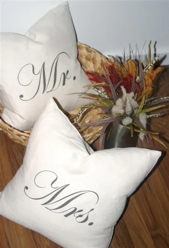 Pillow Decor - Mr And Mrs 18 X 18 Linen Pillow Set