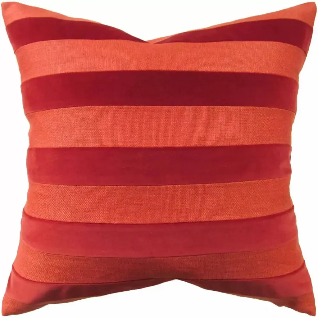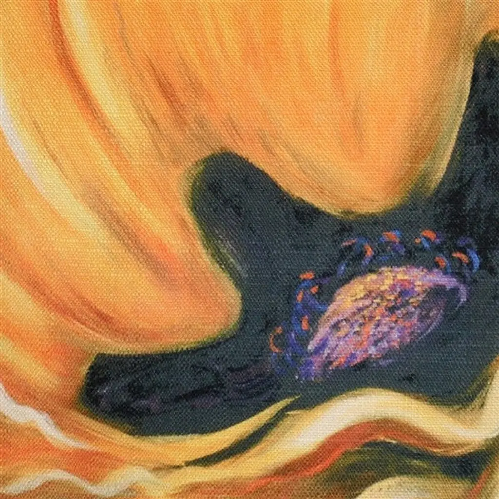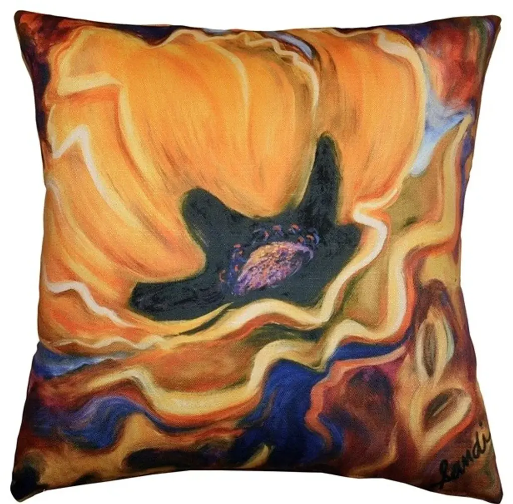 A deep yellow and orange poppy in full bloom is accented with bold strokes of dark blues and reds on this stunning 20 x 20 throw pillow. The back of the pillow features broad two-toned orange stripes. The image is a reproduction from a Sandra Forzani original painting and is available exclusively through Pillow Decor. Enjoy this pillow indoors and outdoors.Features:-Size: 20" x 20" -100% Polyester, soft-to-touch woven indoor/outdoor fabric-Fade resistant for up to 1000 sunlight hours-Same fabric, front and back. Striped pattern on back-Color matched zipper closure-Machine washable, cold water, mild detergent, low heat or lay flat to dry-Filling: Polyester Fiber Fill • Pillow dimensions always refer to the pillow cover''s width and length while lying flat unstuffed and are rounded up to the nearest whole inch.