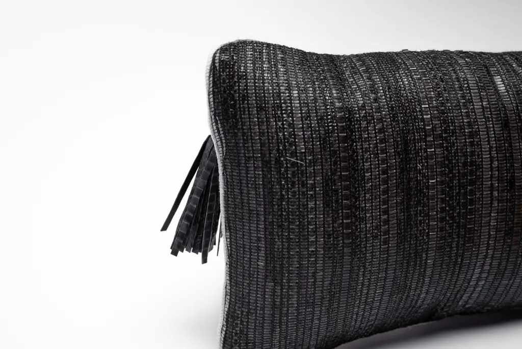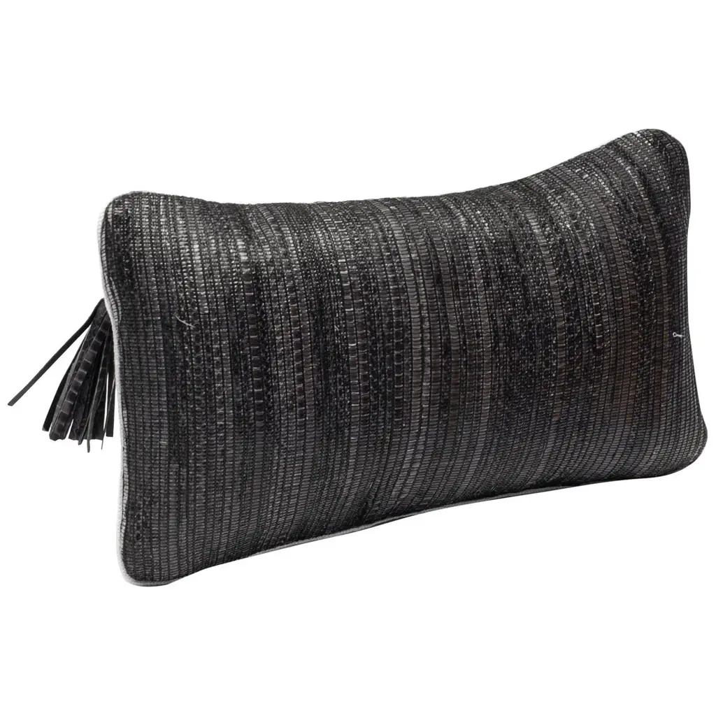 The Paris based label has distinguished themselves since their launch, with their iconic use of shagreen mixed with brass and other exotic materials. All furniture is handcrafted by skilled artisans, ultimately making each piece unique, designed in Paris and produced in the Philippines.The woven snakeskin cushion by Kifu, Paris is the ultimate luxury home textile piece. This textile is unique and original to the brand, who uses traditional weaving techniques with wooden looms to develop this supple and exotic textile. The back is in cream sturdy cotton with white leather piping and the zipper is finished with a snakeskin and brass tassel. Available in a square or a rectangle shape and in 3 color choices: natural snakeskin, two-tone grey snakeskin or dark grey snakeskin. This listing is for the rectangle size in two-tone grey snakeskin. The dimensions of this piece are:Square 20 x 20"Rectangle 18 x 10"All Kifu Paris pieces are handmade by artisans, ultimately making each piece unique. Custom color or sizing available on request. Wipe clean with soft dry cloth.Although inspired by her parents, her collection of home accessories and furniture is a distinct identity of its own. Kifu uses handmade techniques of elaborate inlay patterns of shagreen, shells, semi-precious stones, materials she experienced as a child growing up in her parent’s studio, but interpreted in a younger quirkier way reflecting her youth. From her "jewelry inspired knobs" on decorative boxes, gold bar boxes and an extravagant inlay pattern mix of shagreen and shell inspired by galactic constellations, as seen on her enormous round mirror is refreshing to see. Kifu embodies whimsical elements throughout her collection and is not afraid to be daring and unexpected in her approach to design.All shagreen-covered items should be kept out of direct sunlight, color variants may occur on the stingray and other exotic finishes, but this showcases the Parisian label's commitment to creating authentic luxurious products using natural components.