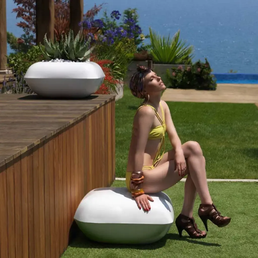 The embodiment of freshness, functionality, luxury and comfort - the Pillow Puff captivates with a smooth, rounded surface and vibrant colors. This beautiful ottoman is far from delicate thanks to its polyethylene structure, which is 100% recyclable and UVI rays-resistant, this versatile foot rest can weather any stormy day with no fuss. So, go ahead and set up a chill-out spot by the beach, by the pool, in the garden, or bring the cozy feel indoors, the Pillow Puff is at home indoors and out. Available in several colors and two finishes.
