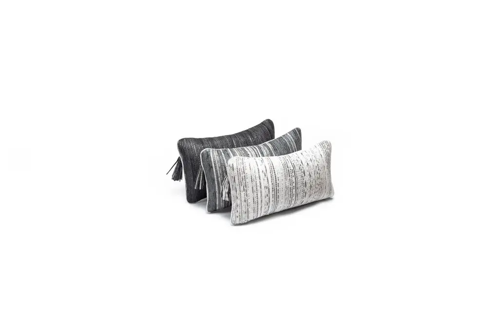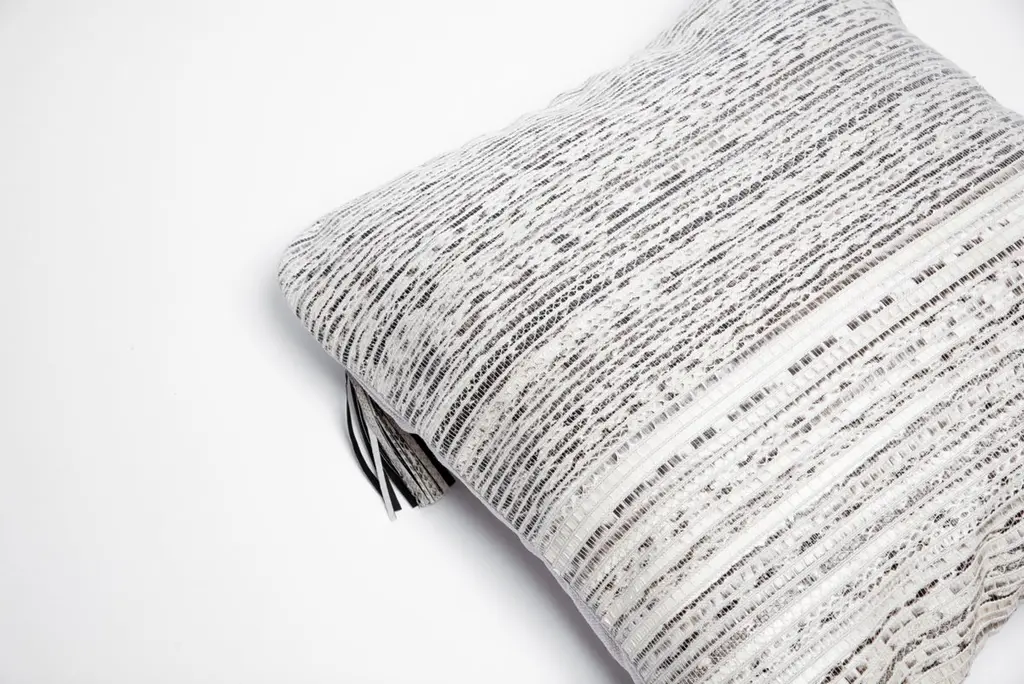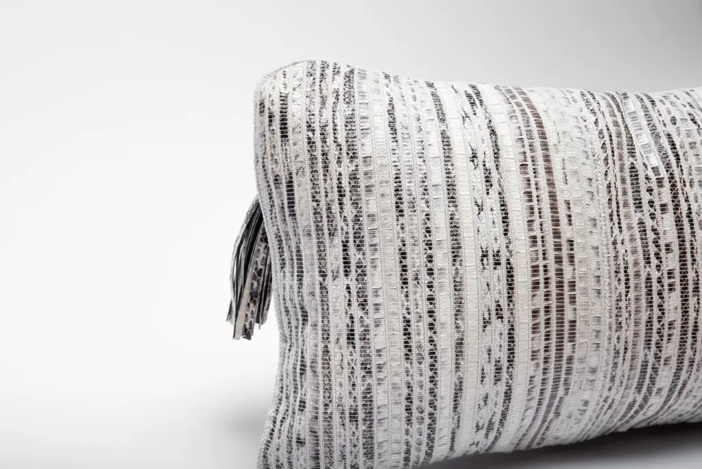 The Paris based label has distinguished themselves since their launch, with their iconic use of shagreen mixed with brass and other exotic materials. All furniture is handcrafted by skilled artisans, ultimately making each piece unique, designed in Paris and produced in the Philippines.The woven snakeskin cushion by Kifu, Paris is the ultimate luxury home textile piece. This textile is unique and original to the brand, who uses traditional weaving techniques with wooden looms to develop this supple and exotic textile. The back is in cream sturdy cotton with white leather piping and the zipper is finished with a snakeskin and brass tassel. Available in a square or a rectangle shape and in 3 color choices: natural snakeskin, two-tone grey snakeskin or dark grey snakeskin. This listing is for 1 square size and 1 rectangle size, please confirm color choices.The dimensions of this piece are:Square 20 x 20"Rectangle 18 x 10"All Kifu Paris pieces are handmade by artisans, ultimately making each piece unique. Custom color or sizing available on request. Wipe clean with soft dry cloth.Although inspired by her parents, her collection of home accessories and furniture is a distinct identity of its own. Kifu uses handmade techniques of elaborate inlay patterns of shagreen, shells, semi-precious stones, materials she experienced as a child growing up in her parent’s studio, but interpreted in a younger quirkier way reflecting her youth. From her "jewelry inspired knobs" on decorative boxes, gold bar boxes and an extravagant inlay pattern mix of shagreen and shell inspired by galactic constellations, as seen on her enormous round mirror is refreshing to see. Kifu embodies whimsical elements throughout her collection and is not afraid to be daring and unexpected in her approach to design.All shagreen-covered items should be kept out of direct sunlight, color variants may occur on the stingray and other exotic finishes, but this showcases the Parisian label's commitment to creating authentic luxurious products using natural components.