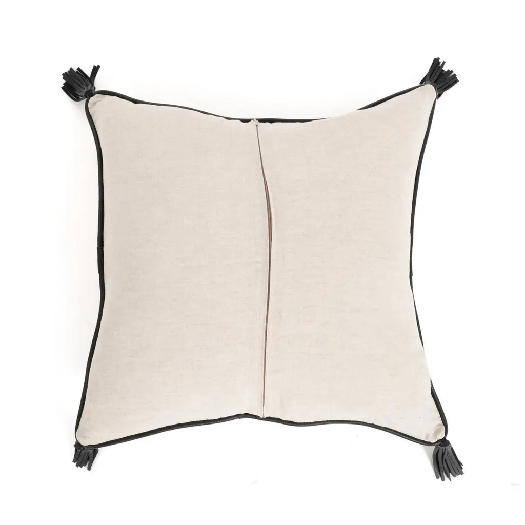 Effortlessly blending textures and natural materials, this pillow is handcrafted of ethically and sustainably sourced Zebra Hide with solid natural linen fabric on the reverse. A feather-and-down insert ensures long-lasting comfort. Due to the use of natural materials, each piece is unique and may vary slightly from image shown.Product informationDimensions: 24" x 24"Color: Natural / blackMade of: genuine Burchell's Zebra hide / natural linen / tanned bovine leather; insert, 95% feather / 5% downMade in: cape town, South AfricaCare: dry clean only.