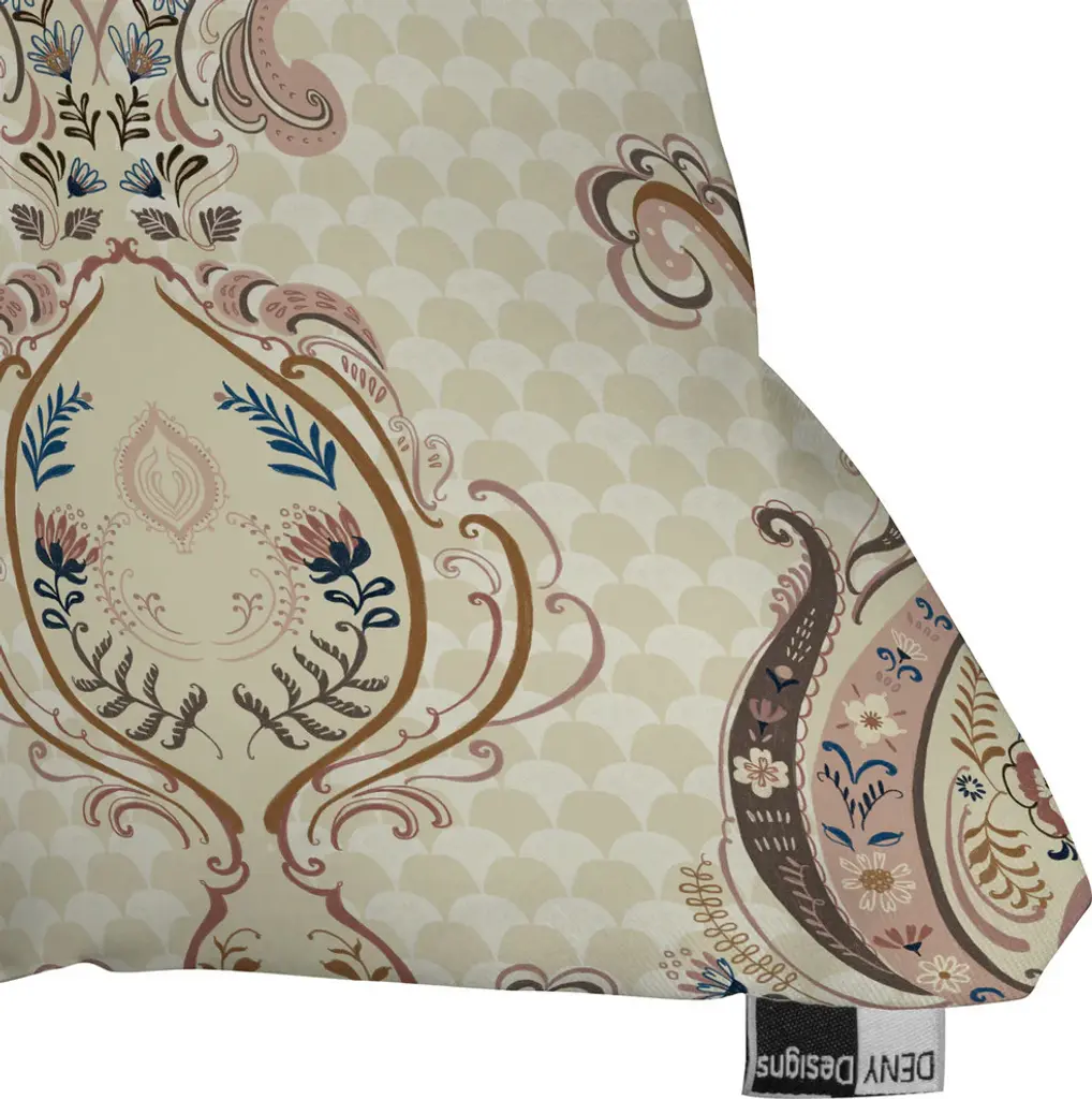 Pimlada Phuapradit Pink And Off White Floral Damasks Outdoor Throw Pillow