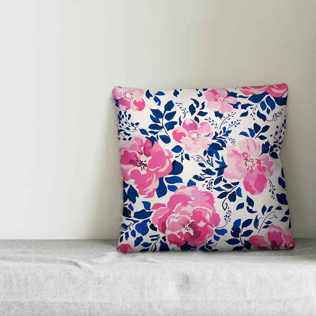 Pink And Blue Forals Outdoor Throw Pillow, 18x18