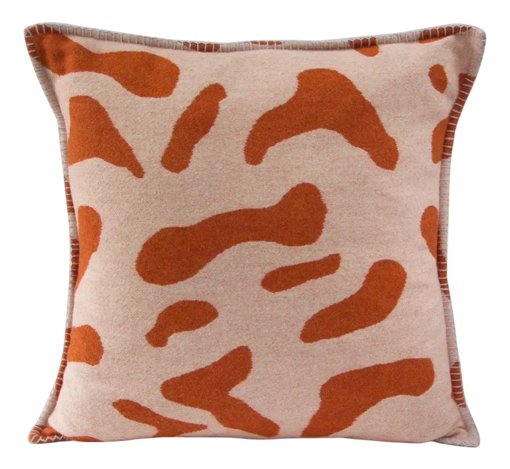 Pink, Orange & Peach Woven Recycled Wool Cushion, Pillow Made In The Uk
