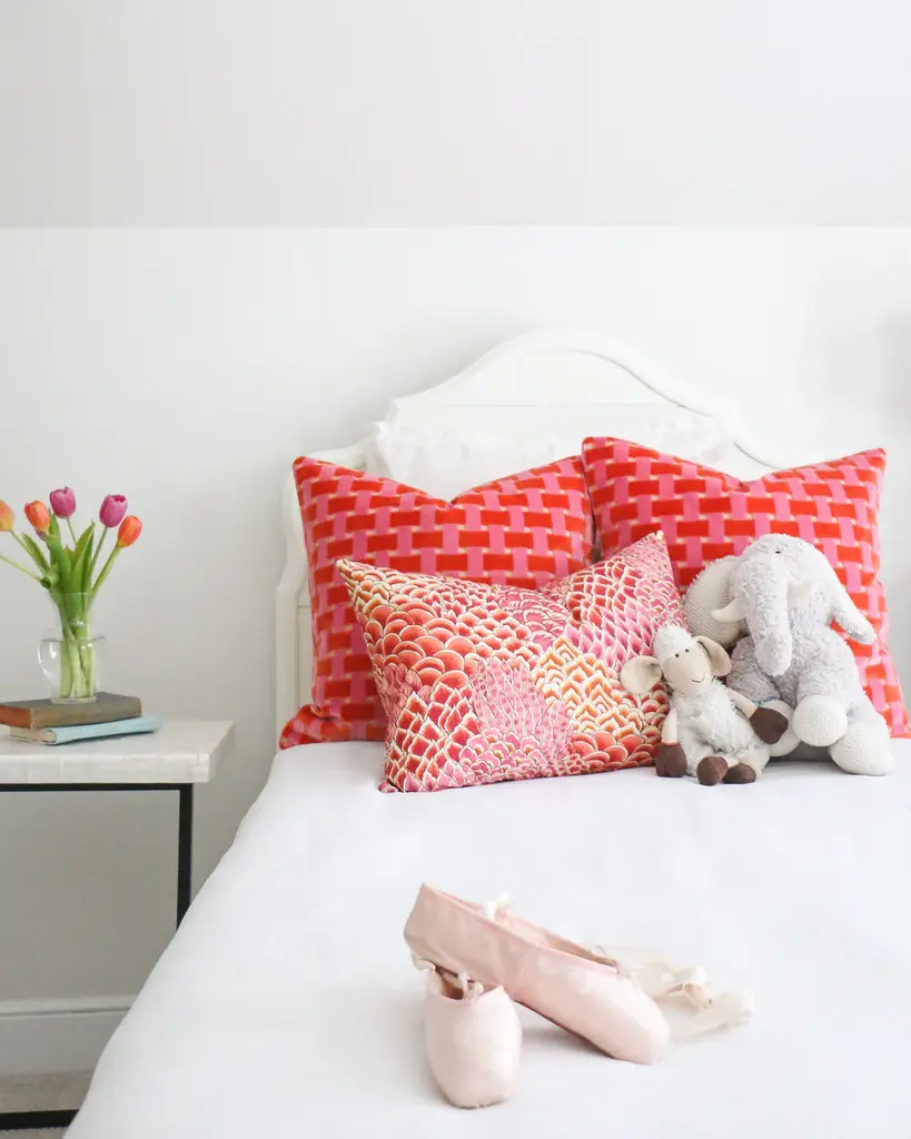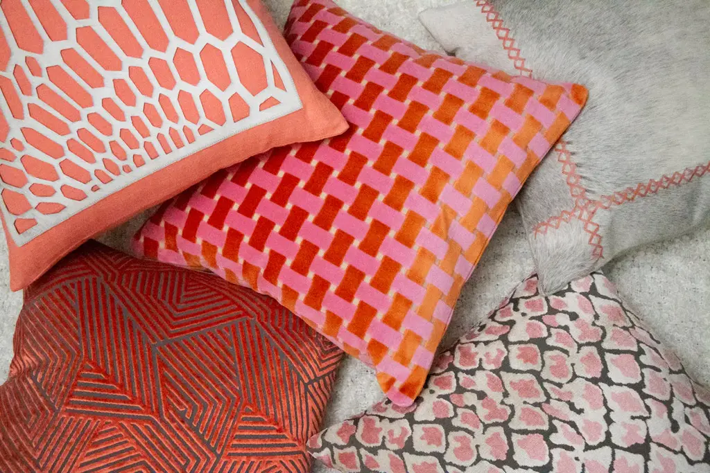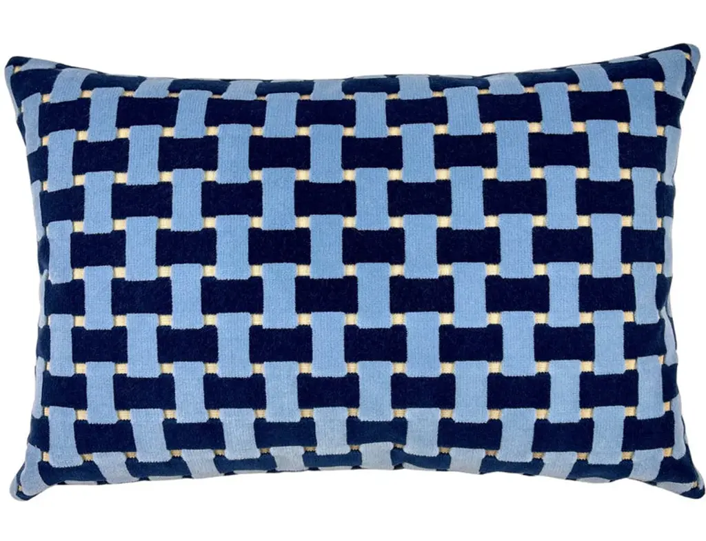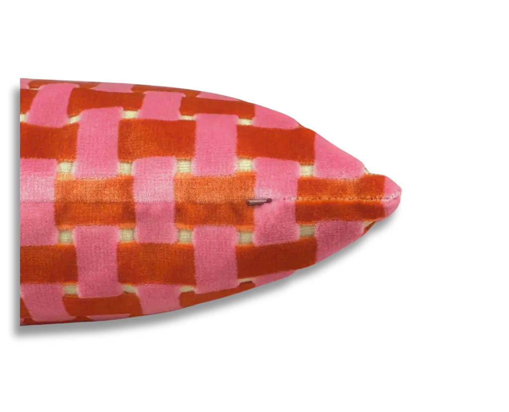 Add a fun and playful pop of color to any room with our Gwen cut velvet pillow. Available in Candy- which is a bubblegum pink and blood orange mix, Admiral- a light blue and navy, or Caribe which is a citron and aqua mix. . The basket weave pattern adds a touch of elegance to your space, making it the perfect statement piece. With an identical front and back, this pillow will look good from any angle.